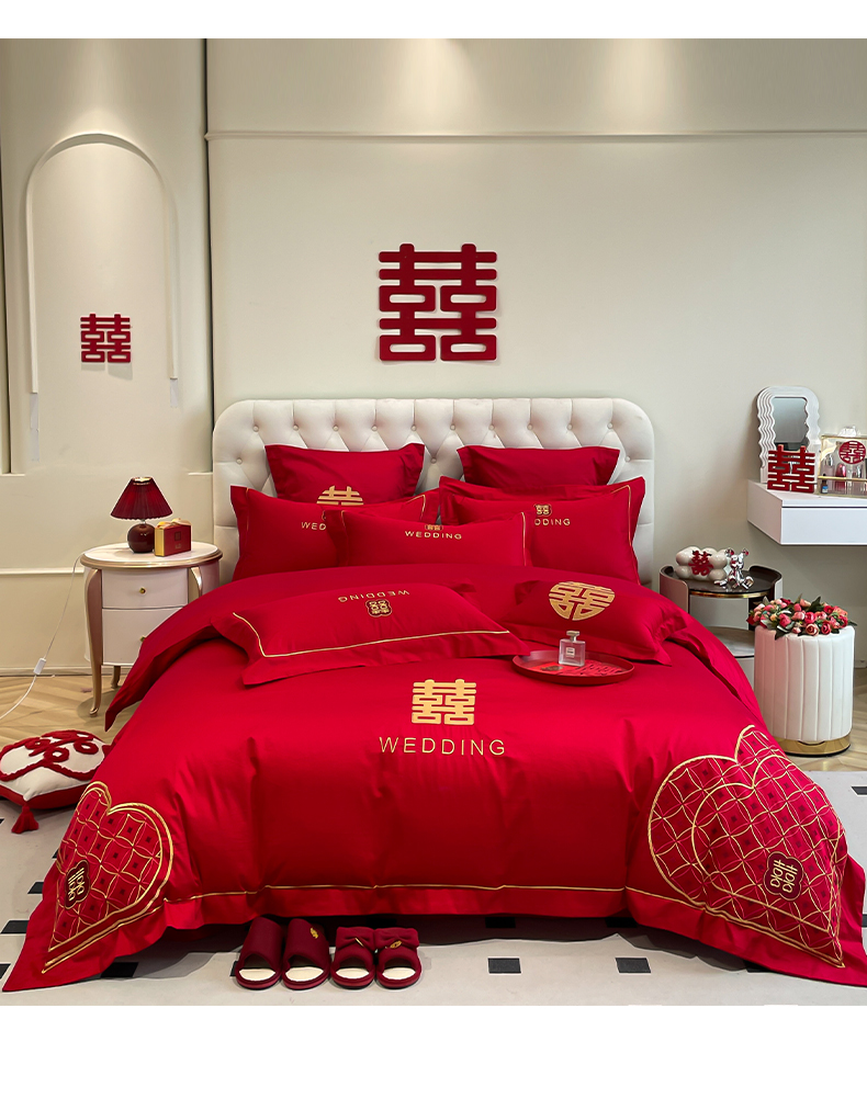 欧乐蒂 2025新款亲肤棉婚庆刺绣四件套系列 心心相印