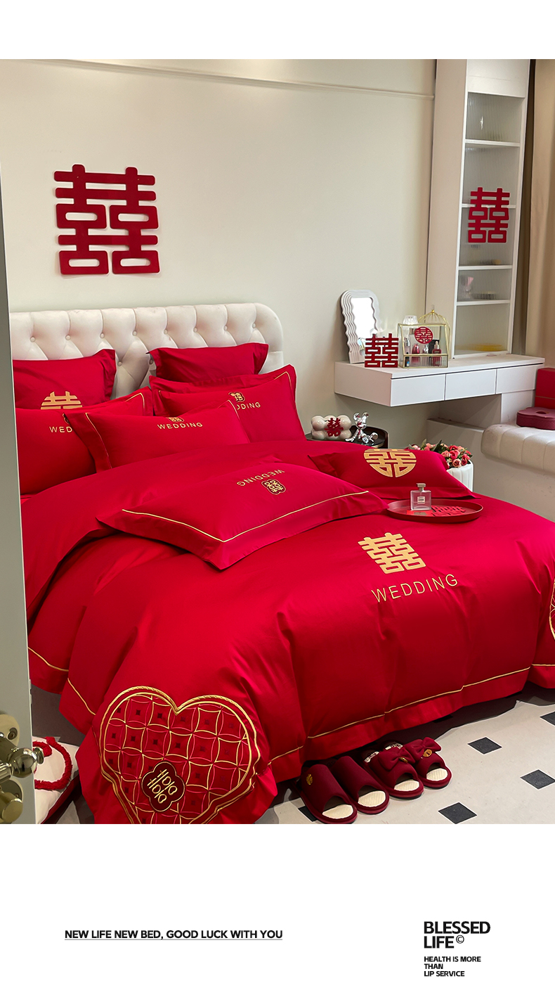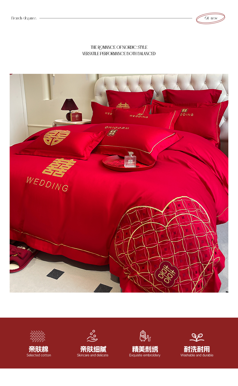 (总)欧乐蒂 2025新款婚庆款牛奶绒刺绣系列四件套-爱相随,爱相随-喜红,爱相随-金