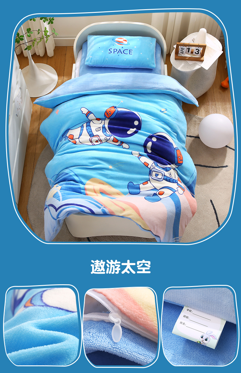 当前位置: 91家纺网 > 商品网购 > 床品套件 > 四件套 > 牛奶绒四件套 > 孩子王家纺 2024新款太空人系列大版双面牛奶绒学生幼儿园系列三件套六件套多件套 遨游太空