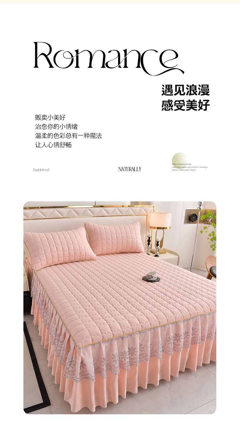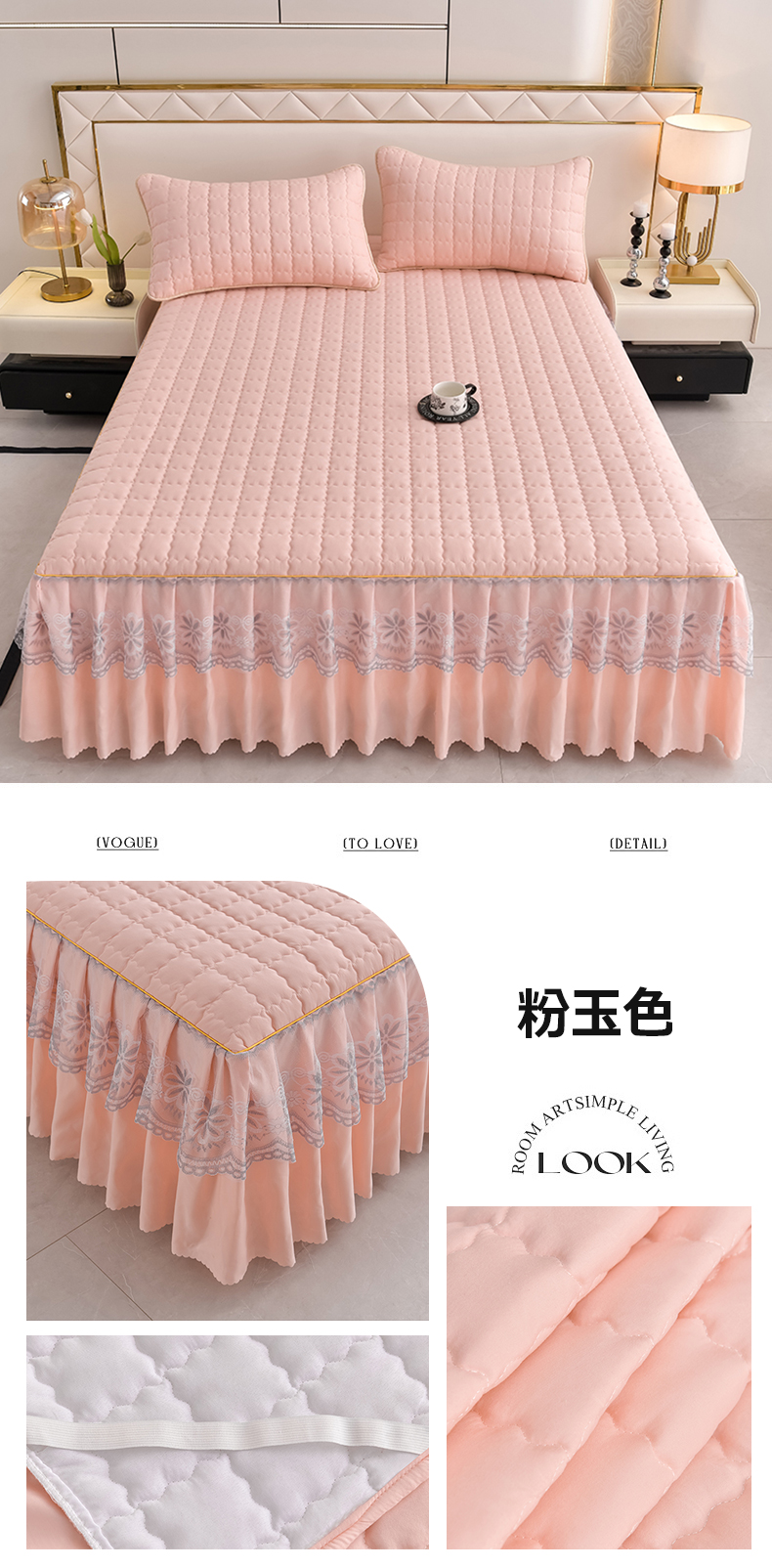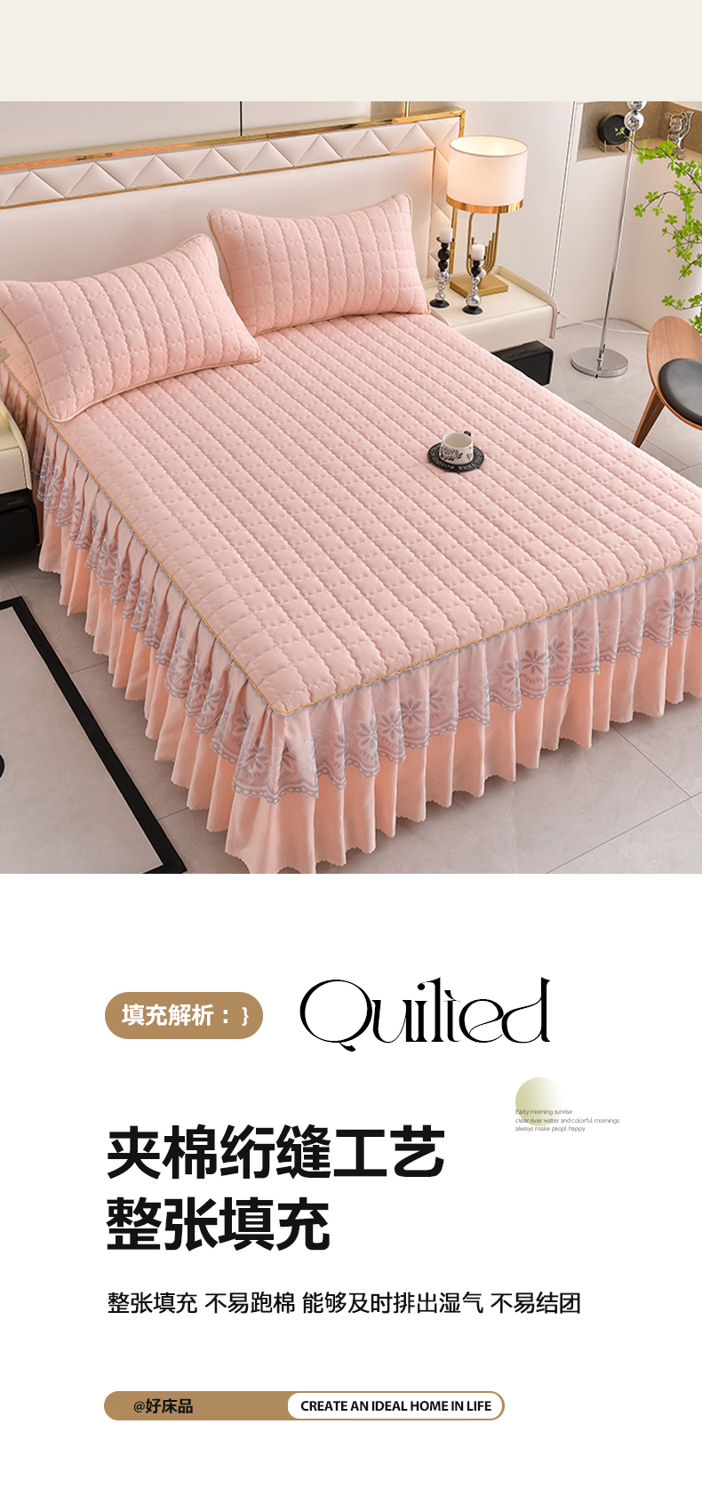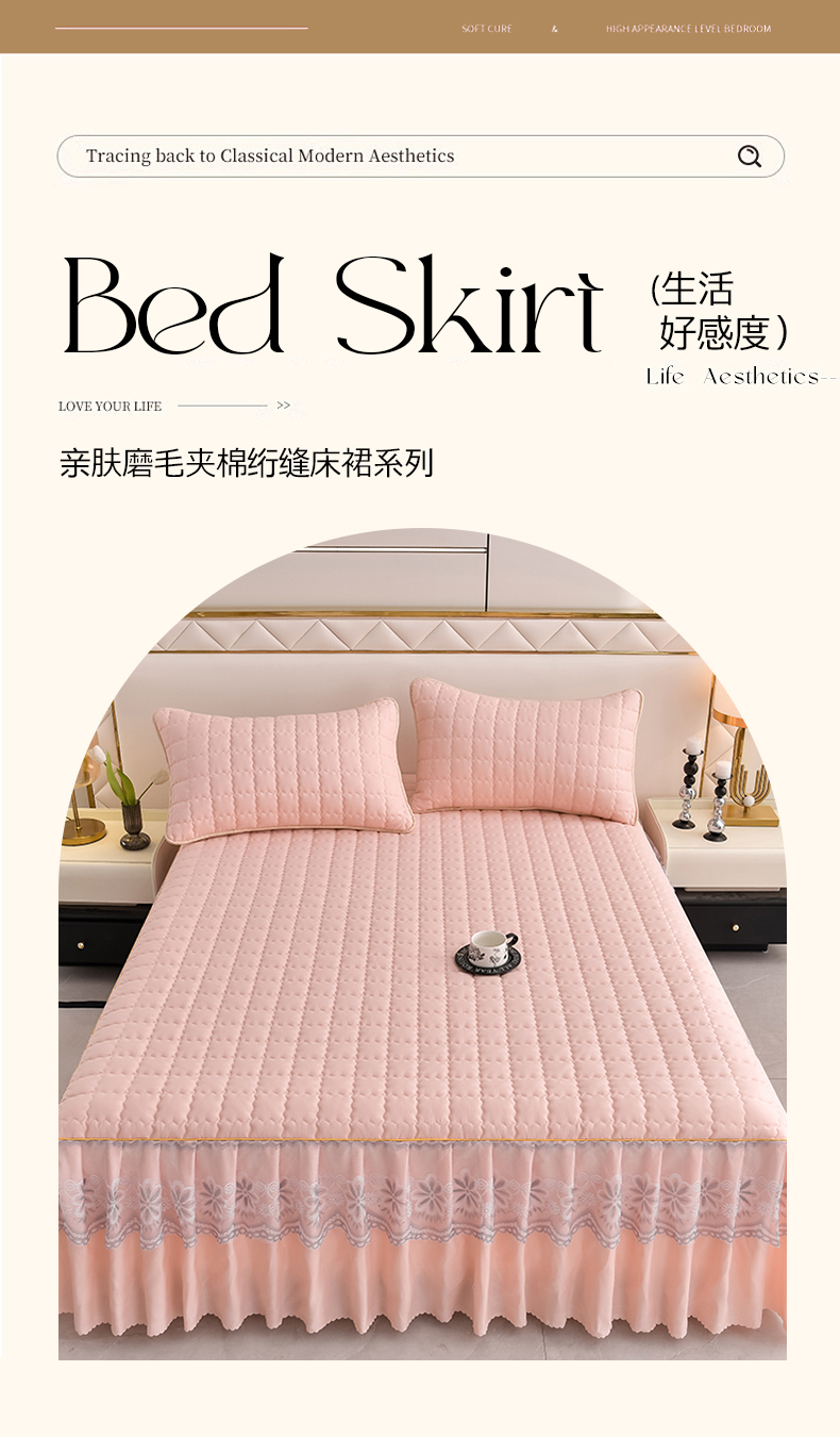 艾裙海 2025新款90克磨毛夹棉绗缝床裙 粉玉色