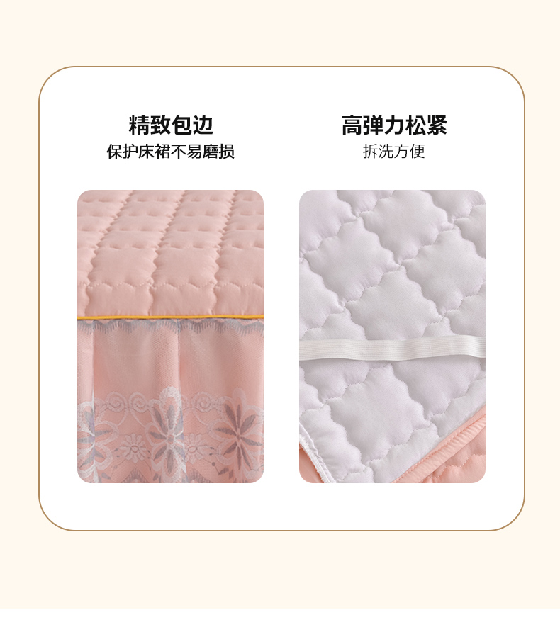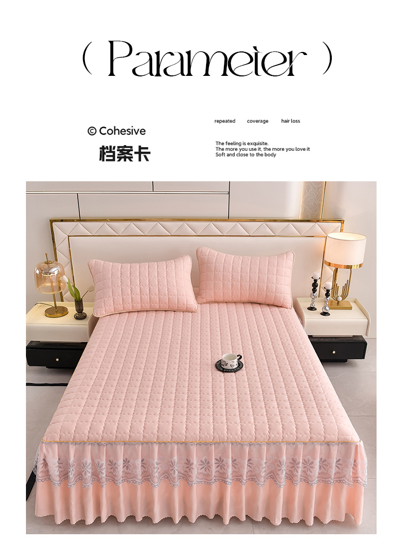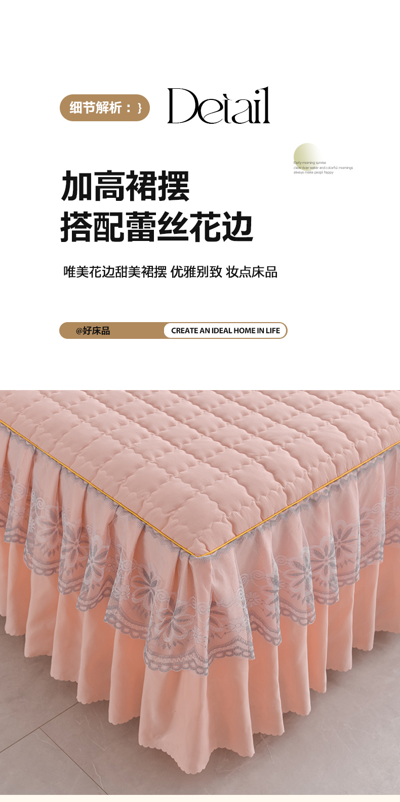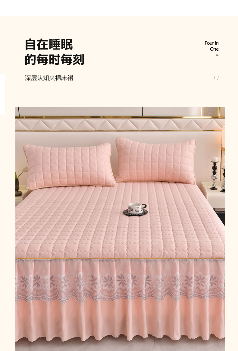 艾裙海 2025新款90克磨毛夹棉绗缝床裙 粉玉色