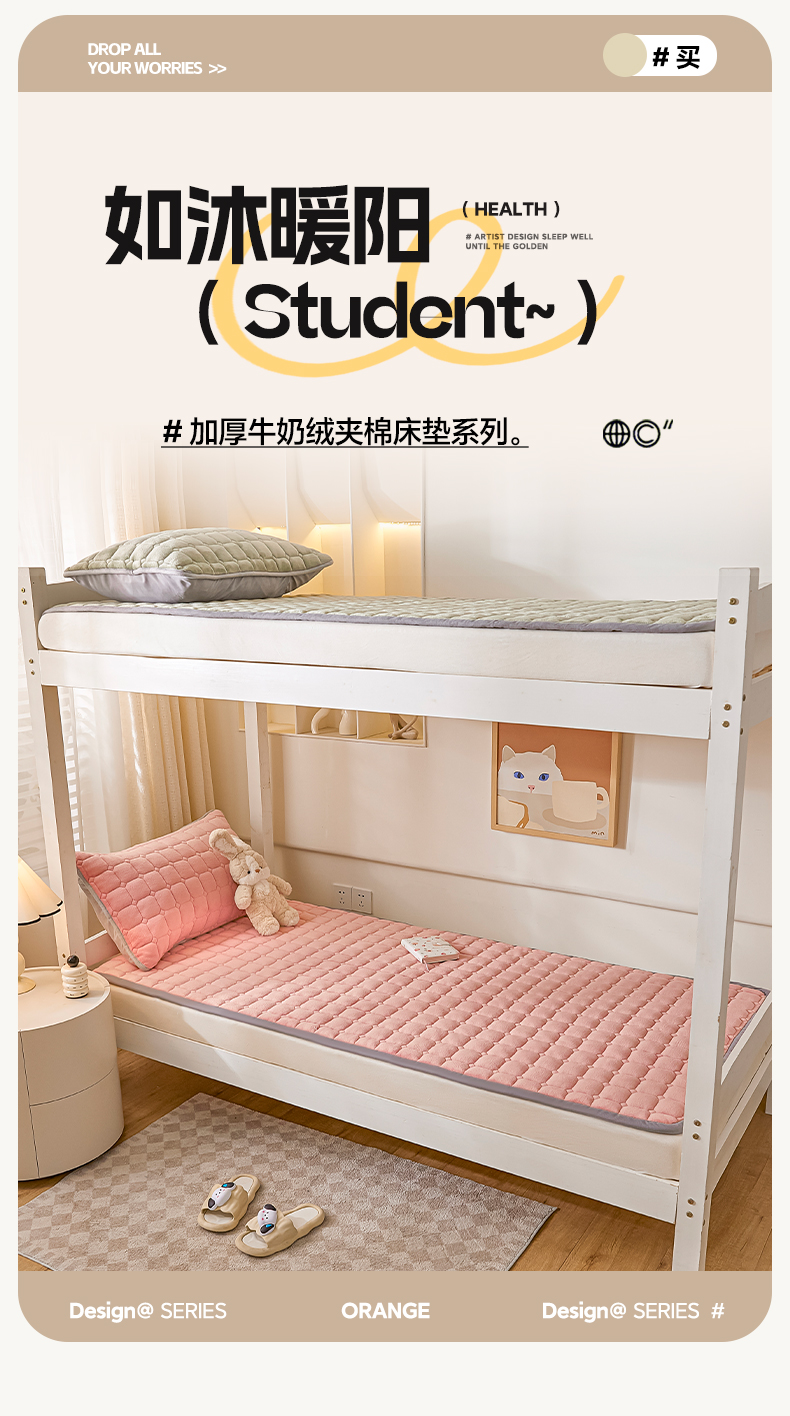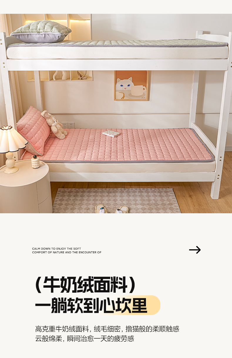 卡伦家纺 2025新款A类牛奶绒夹棉加厚床垫学生宿舍单人床垫 灵动玉