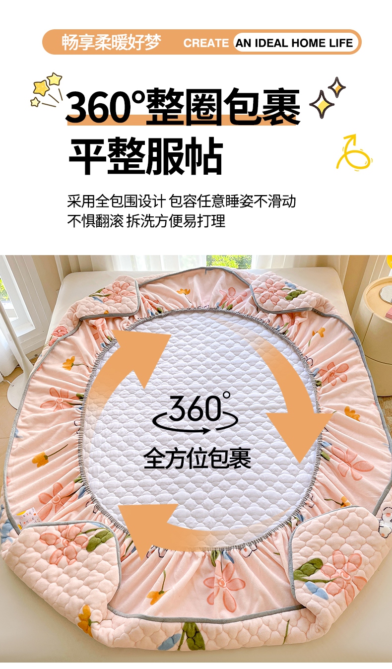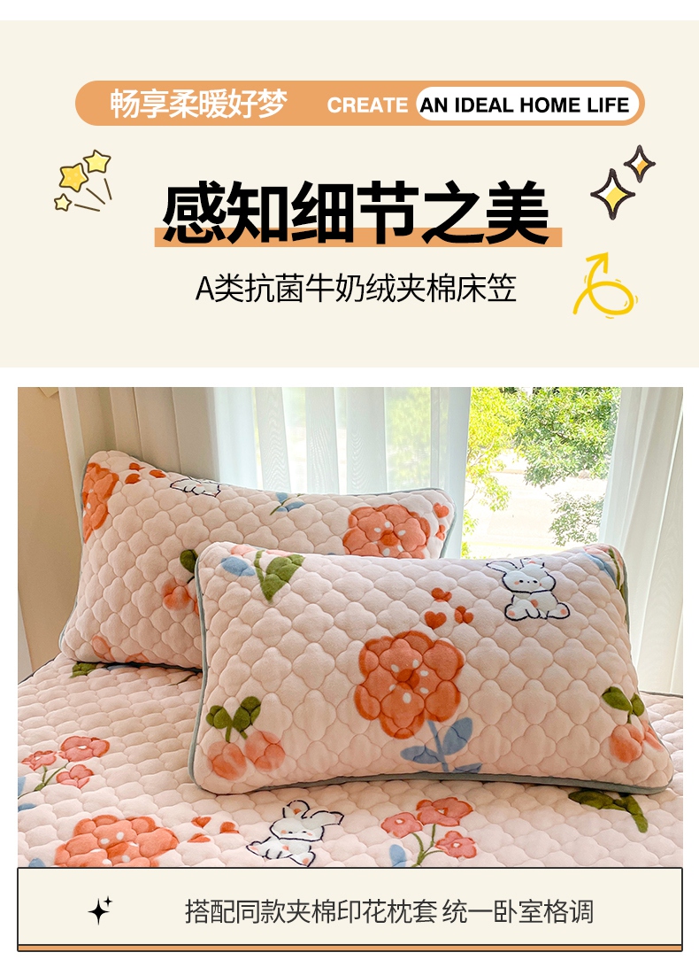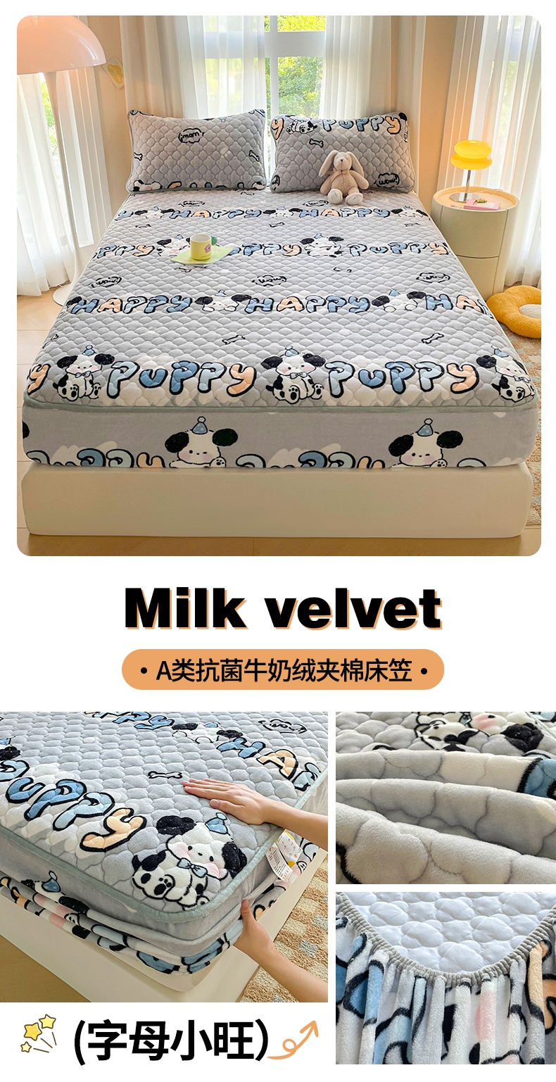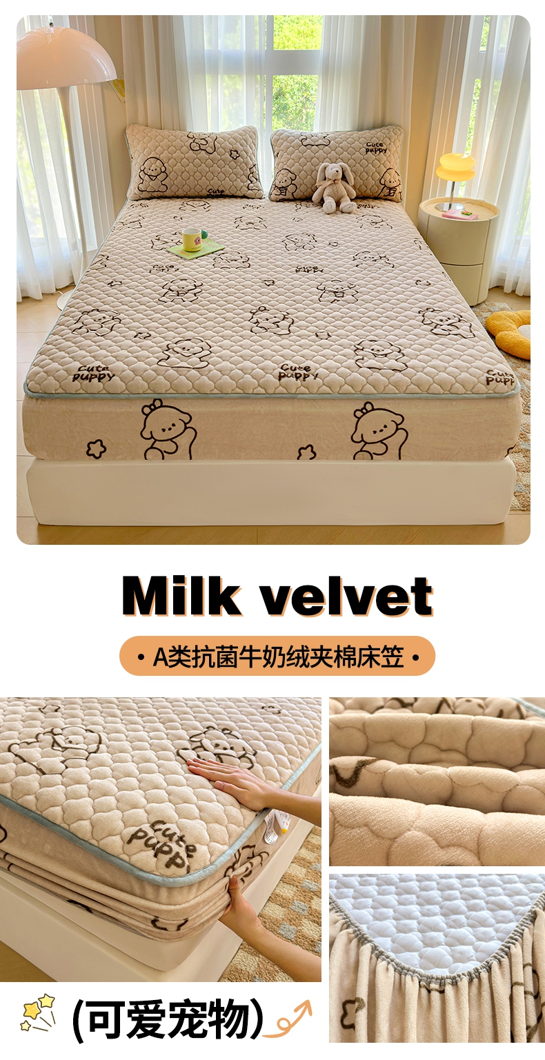 (总)康纳利 2025新款A类抗菌加厚牛奶绒印花夹棉床笠可搭配同款四件套,可爱宠物,暖意,幸运熊,花间小兔,梦幻星空,波点兔,彩虹草莓,草莓小兔,粉色爱心,哈尼小熊,蝴蝶结,花意-咖,奶油小熊,幸运流星,幸运小龙,郁意盛开,字母朵朵,字母小旺,繁星,粉萌兔,花眠语,花漾,卡皮巴拉,礼物小咪,萌宠派对,奶油宠物,KT花园