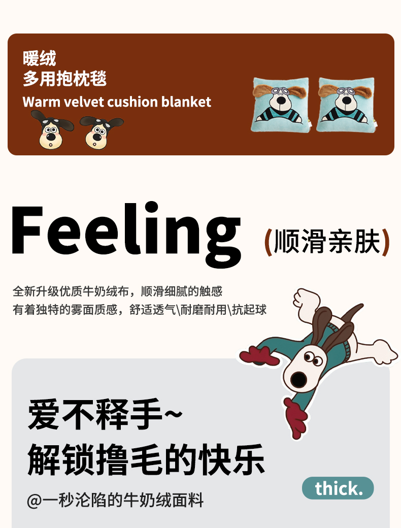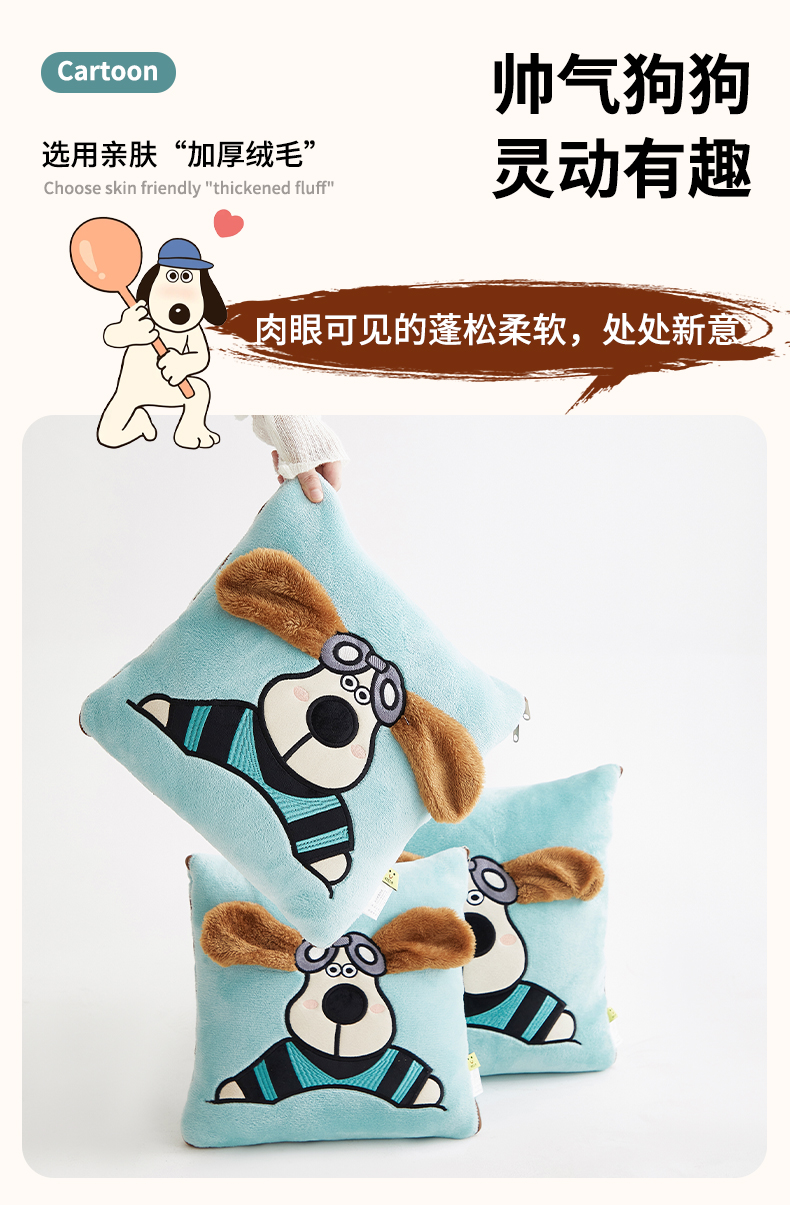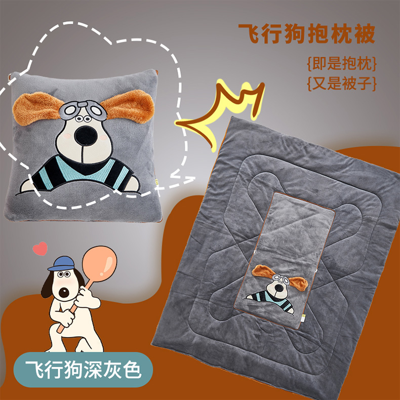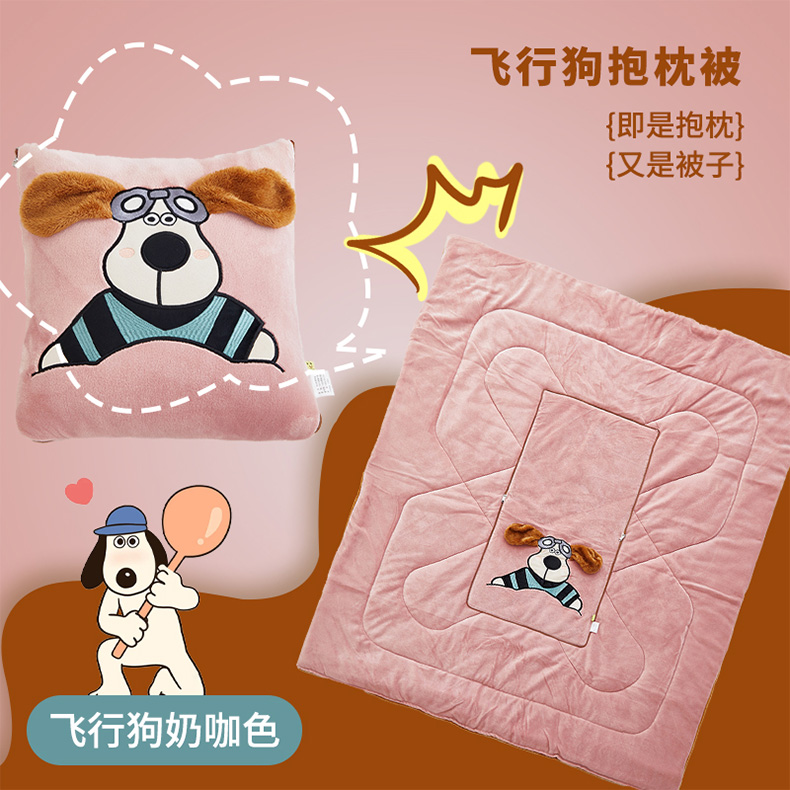 商品名称:古本家居 2024新款飞行狗贴布立体卡通刺绣抱枕被 飞行狗温馨米