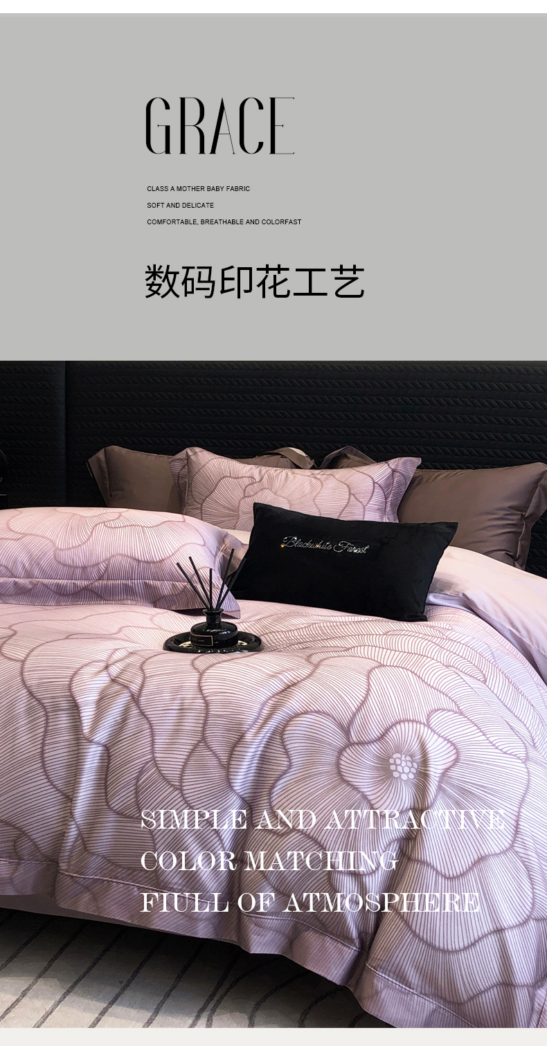 黑白森林2024款 60S支兰精天丝数码印花四件套,朝颜,木槿,玉茗,春浅,京墨,半夏,丹若,繁缕,青黛,德琳-粉,德琳-绿,蒂娜-灰,蒂娜-紫,慧莉-粉,慧莉-绿,欧瑞,夏夜