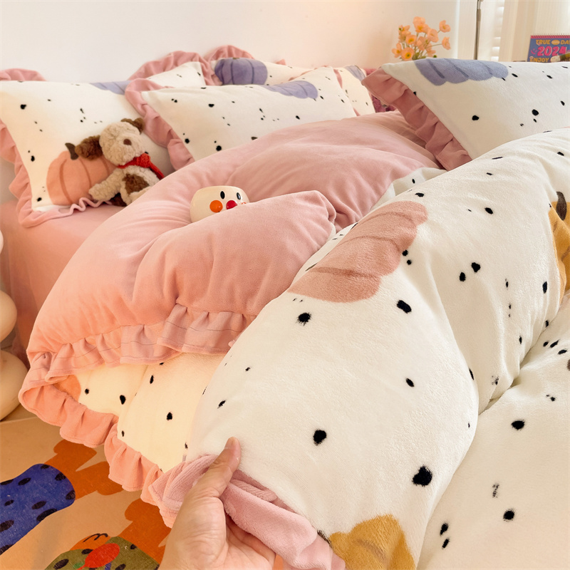 (总)麦朵 2024高克重牛奶绒花边款四件套雪花绒金貂绒套件宝宝绒雕花绒被套,多彩南瓜,乖乖狗,哈基米-绿,橘子狗,领结粉,曼琳-粉,曼琳-绿,童话乐园,晚安猫,象先生