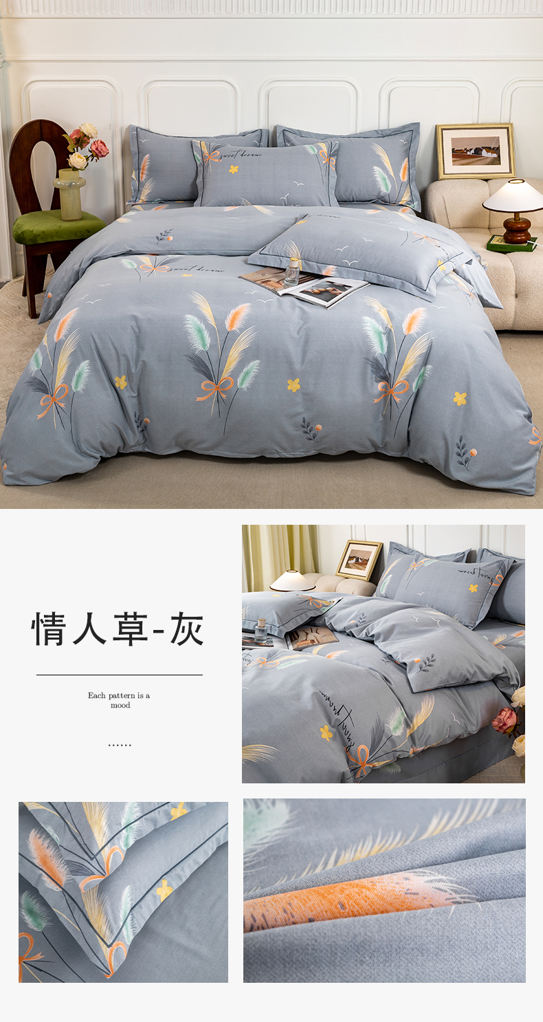 当前位置: 91家纺网 > 商品网购 > 床品套件 > 四件套 > 全棉普通四件套 > 威布斯 2025新款加厚纯棉全棉磨毛三件套四件套 情人草-灰