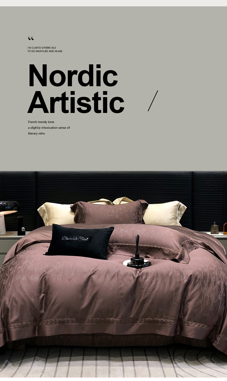 商品名称:黑白森林 2024新款高支天丝棉提花四件套系列-西洛 西洛-珠子褐