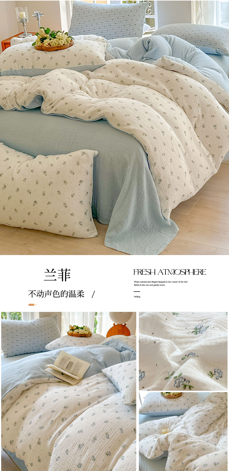商品名称:木楌 2025新款全棉A类皱皱纱印花四件套兰菲