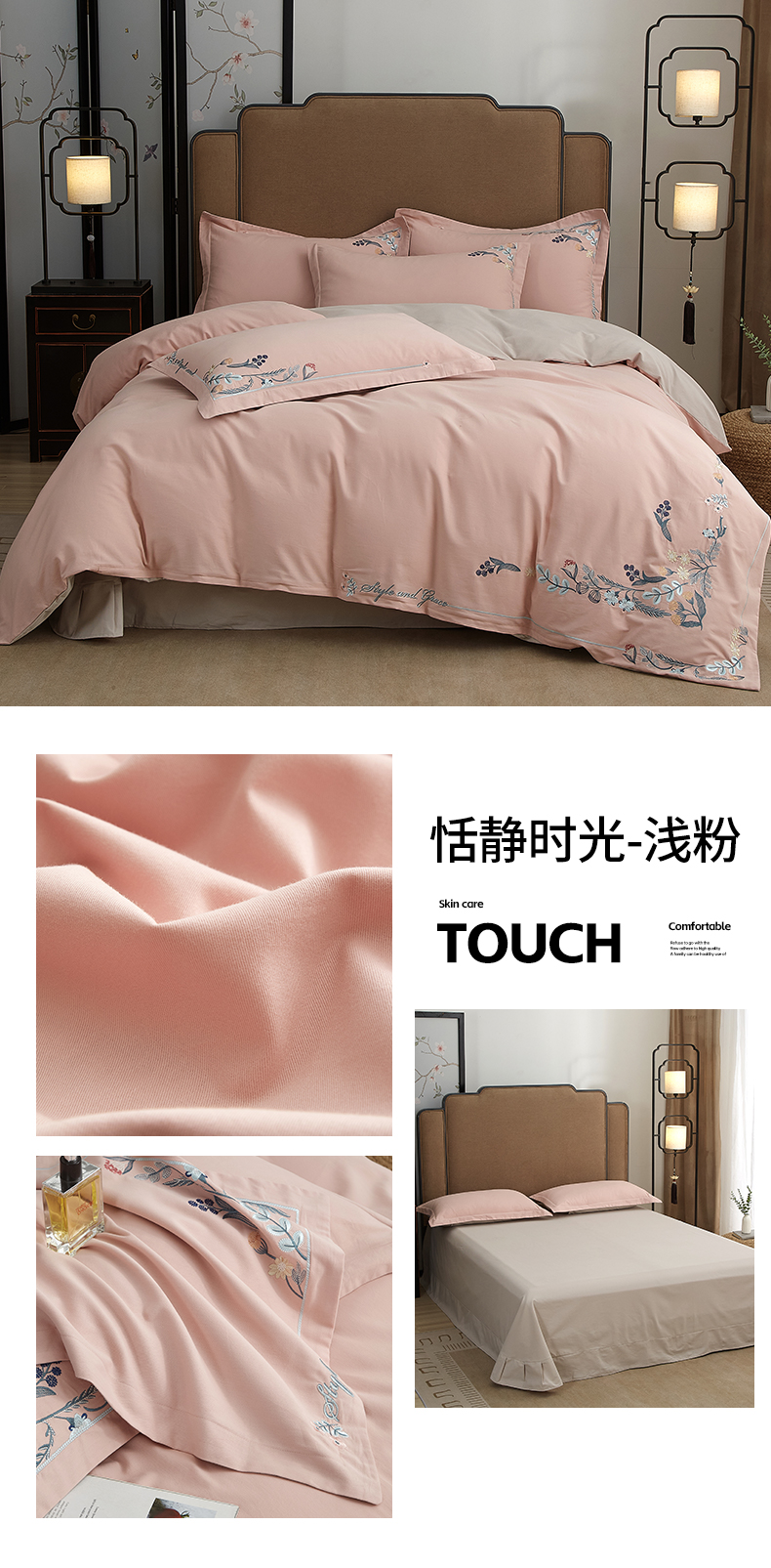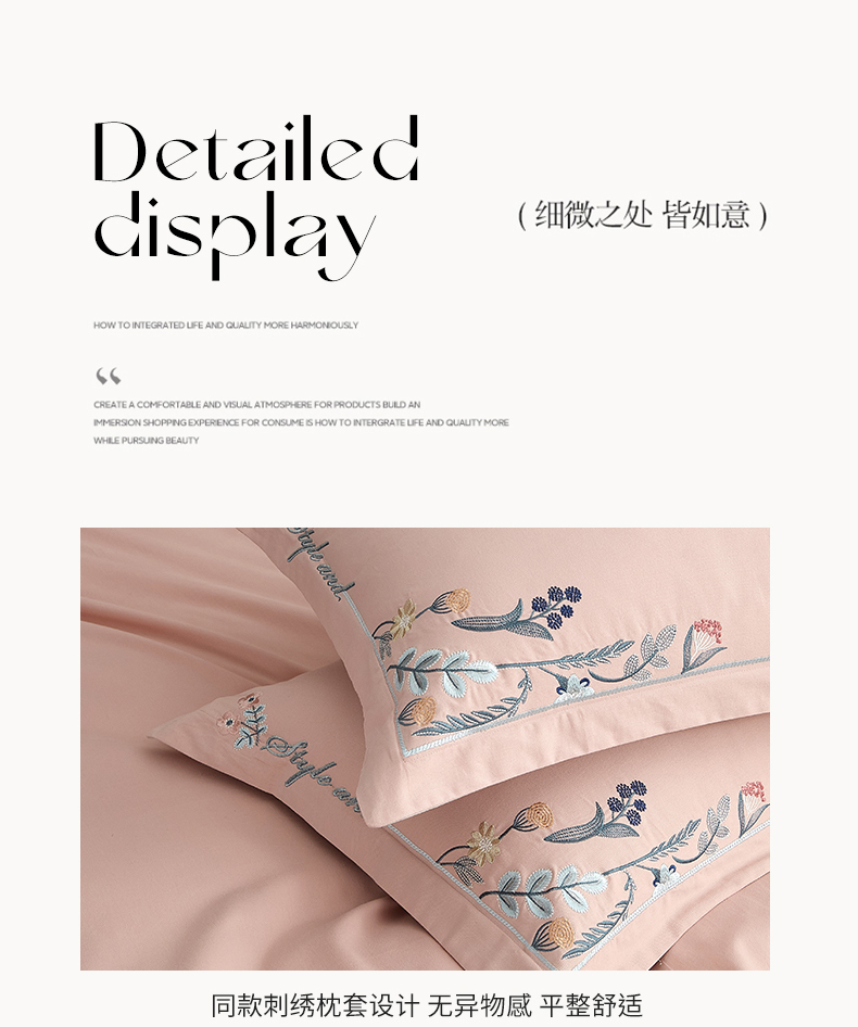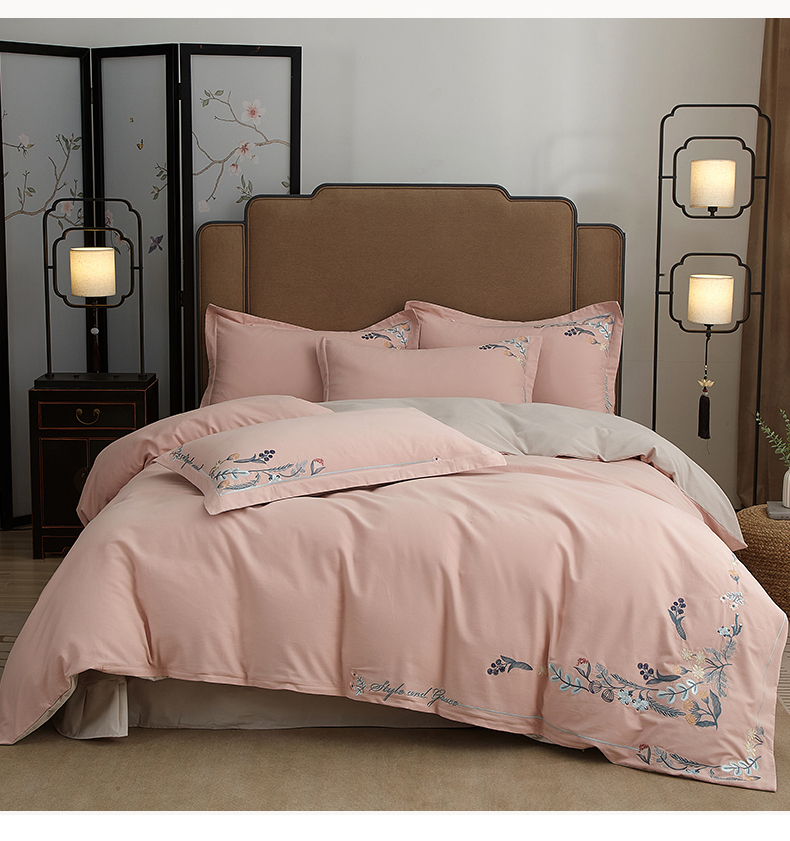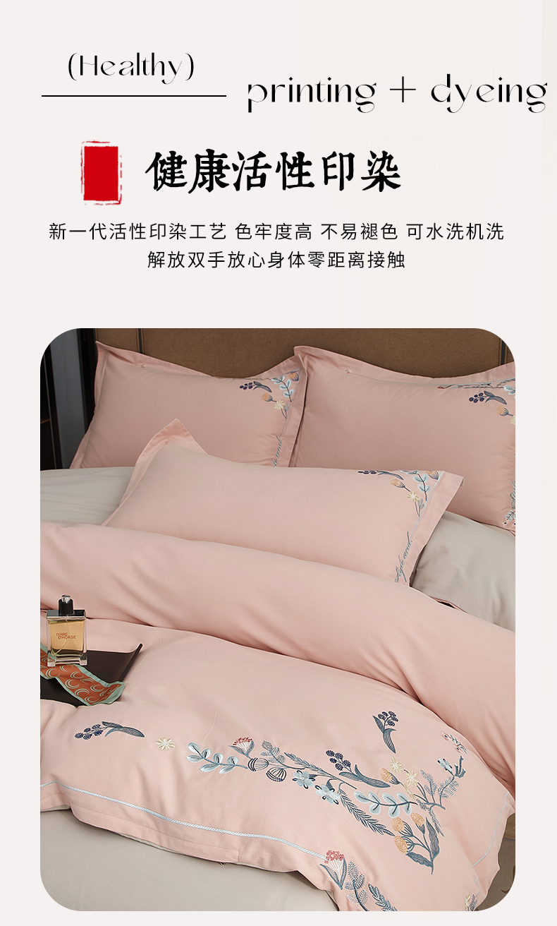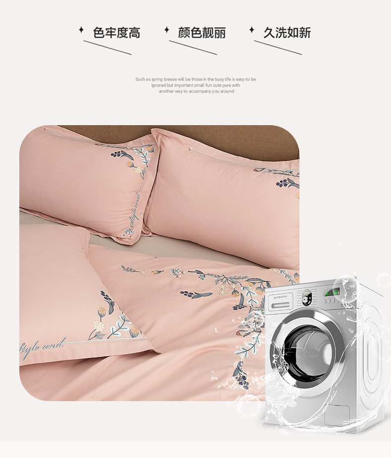 商品名称:金纱玉纺家纺 2024新款百分之百全棉新款轻奢刺绣四件套-恬静时光 恬静时光-浅粉