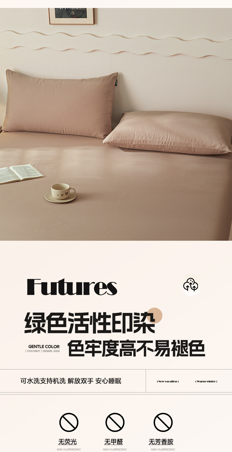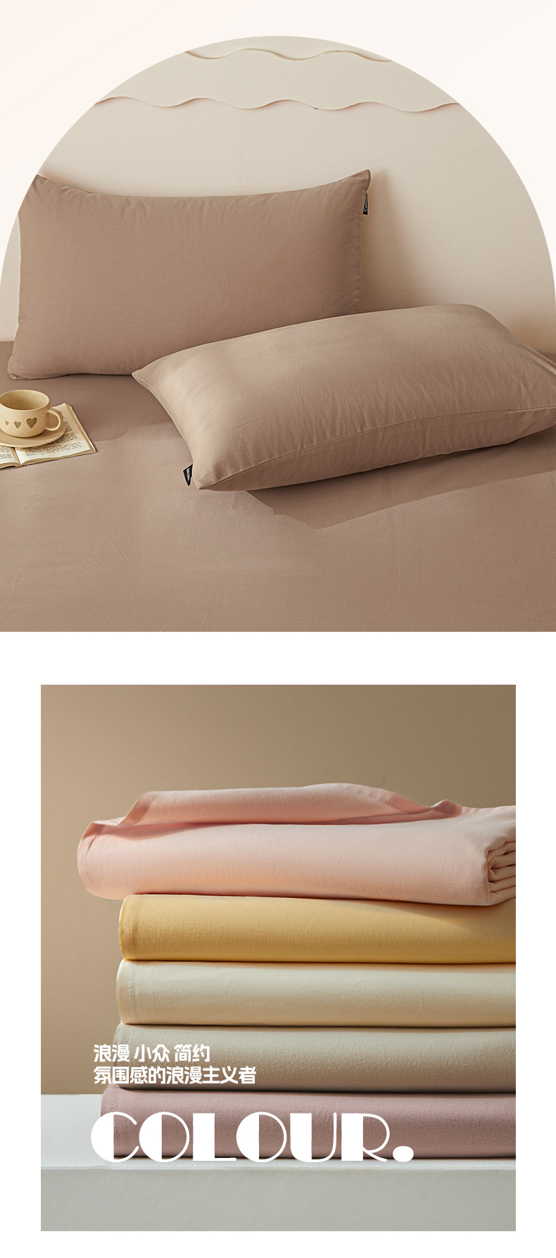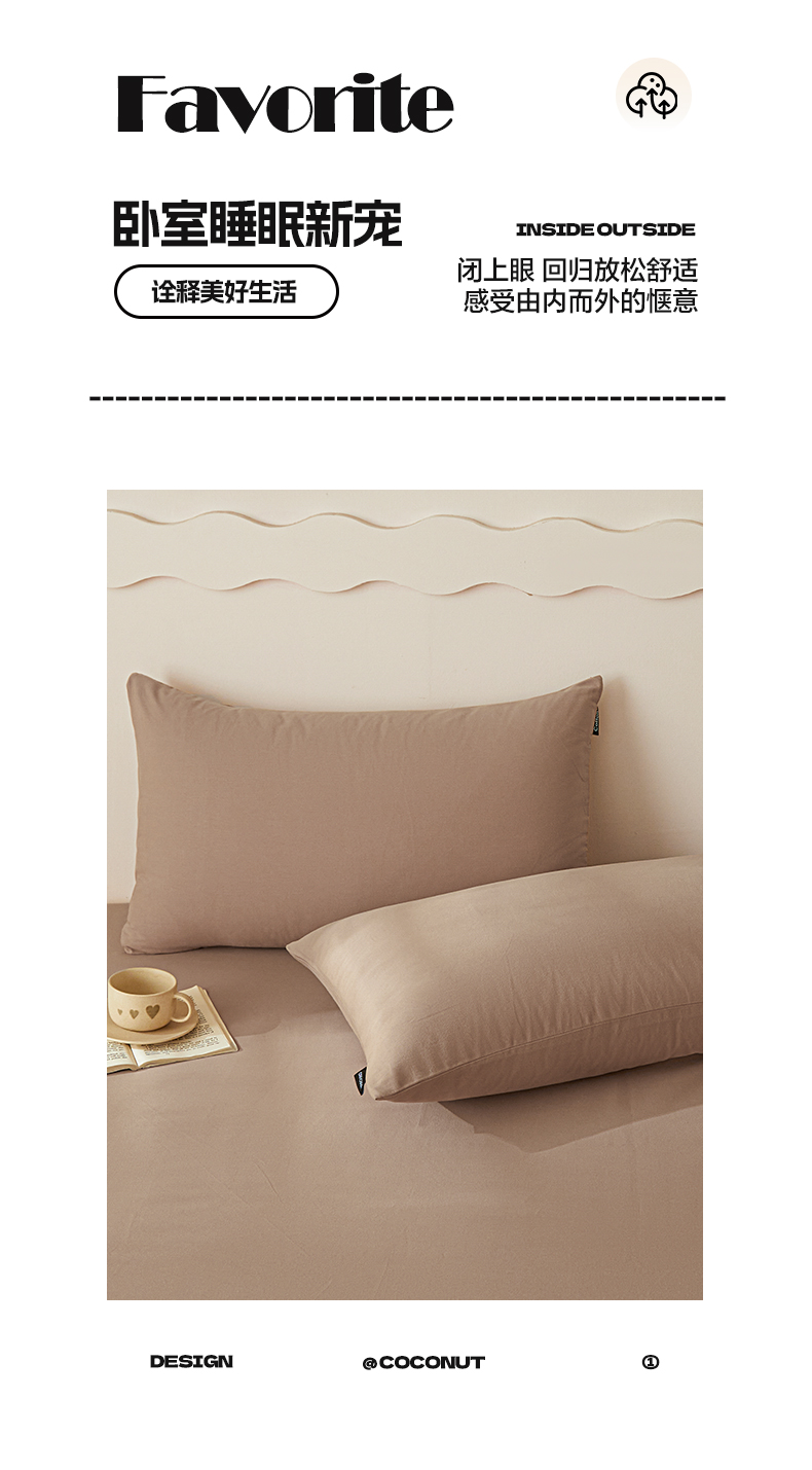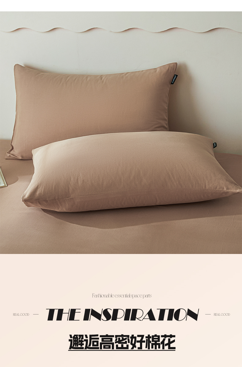 涵宸家纺 2024新款全棉磨毛四件套纯厚系列-单枕套 a复古棕