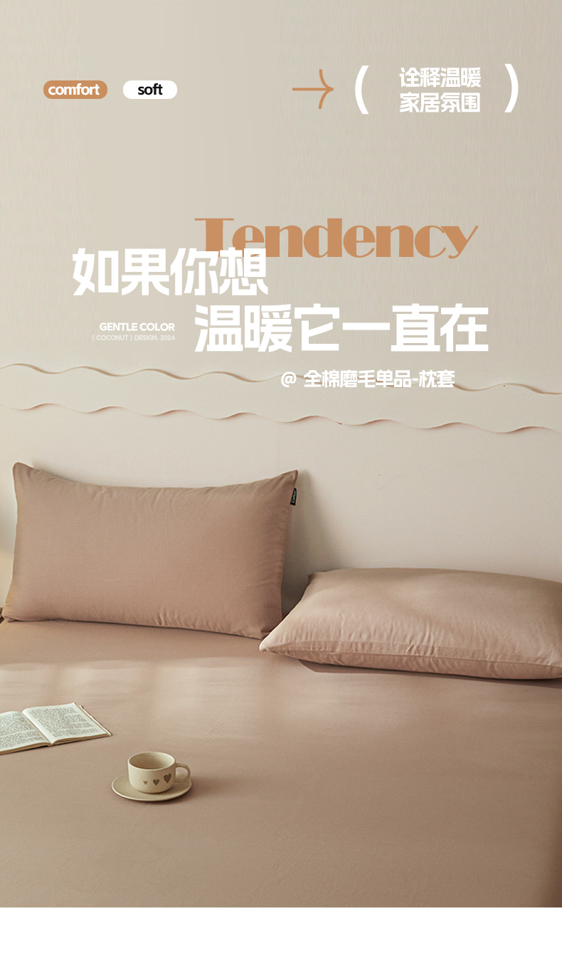 商品名称:涵宸家纺 2024新款全棉磨毛四件套纯厚系列-单枕套 a复古棕