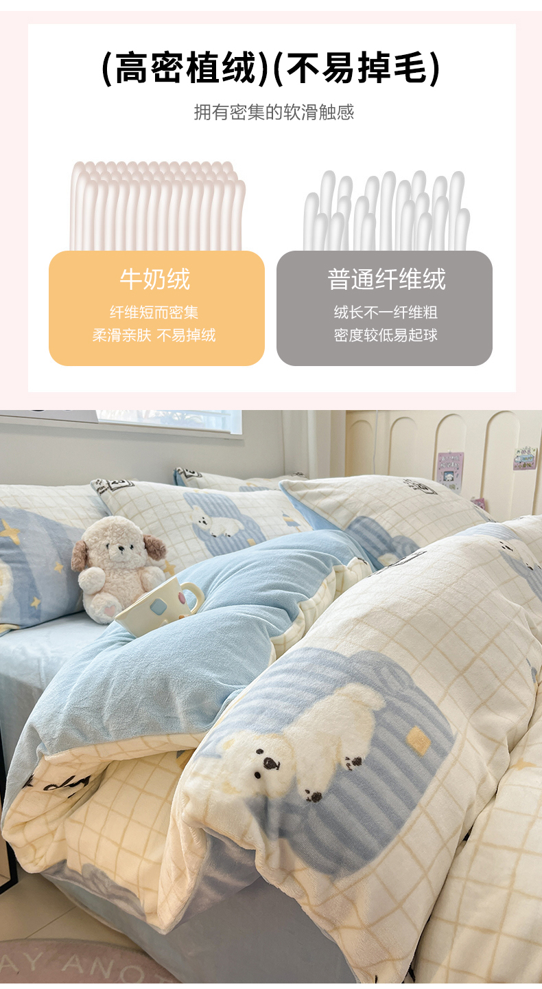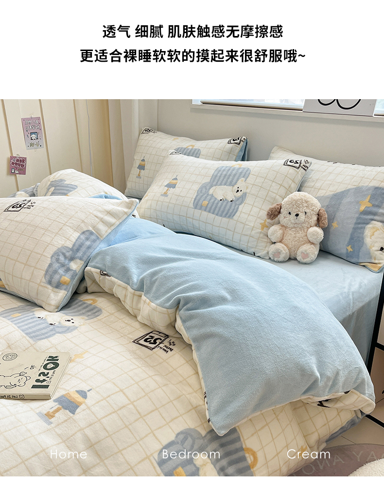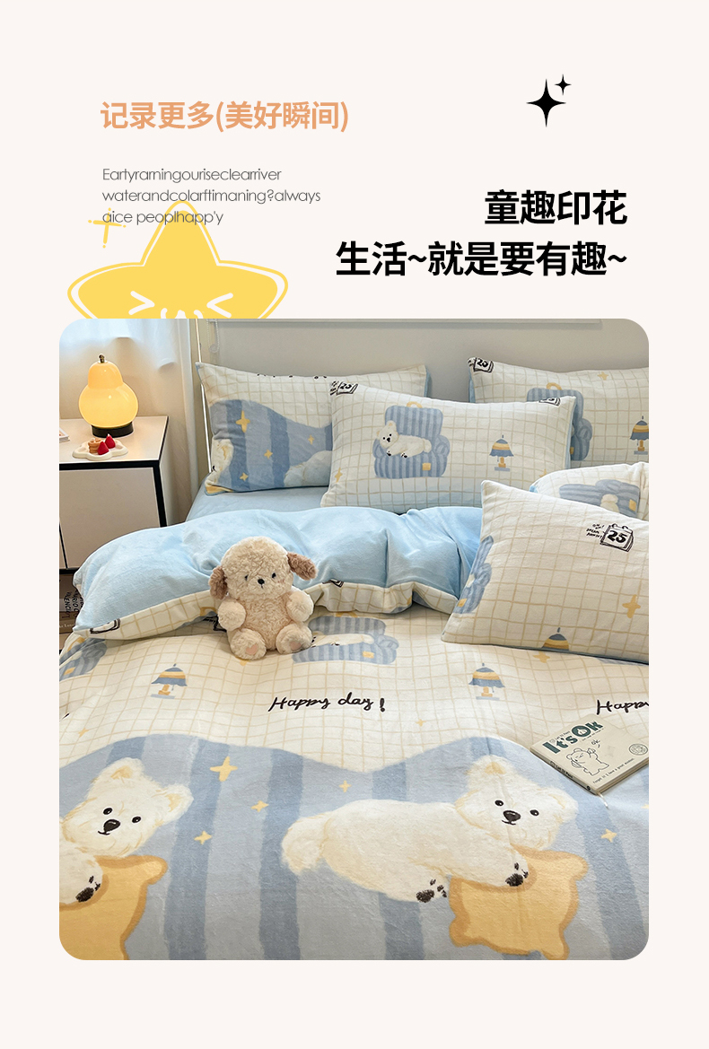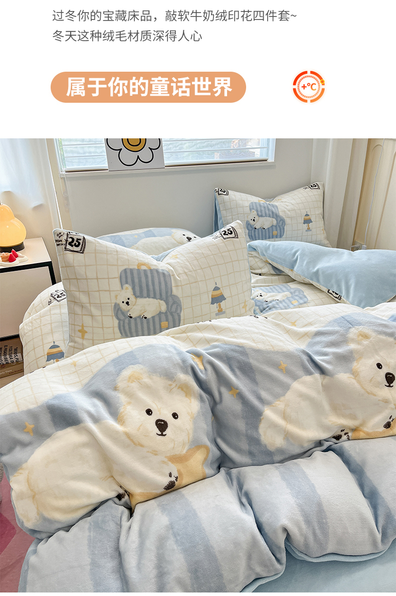 商品名称:(总)捌月 2024新款童话镇系列高克重印花牛奶绒四件套卡通小清新加厚保暖绒套件