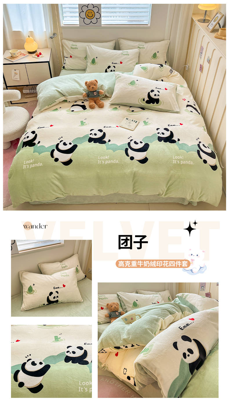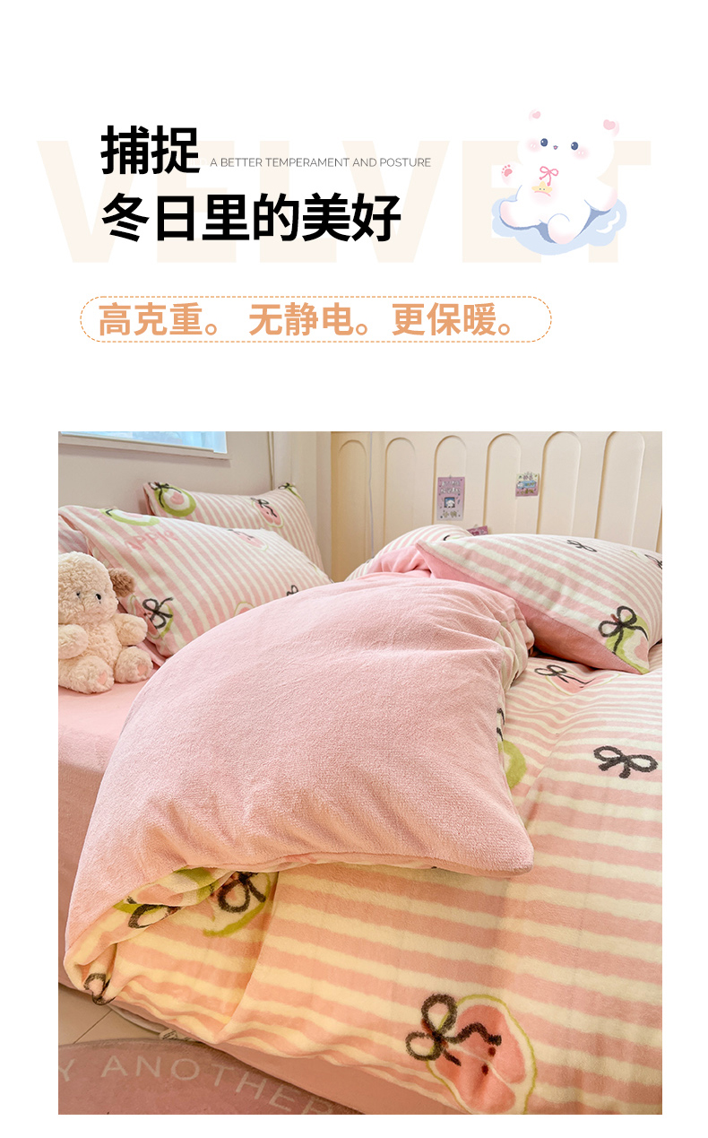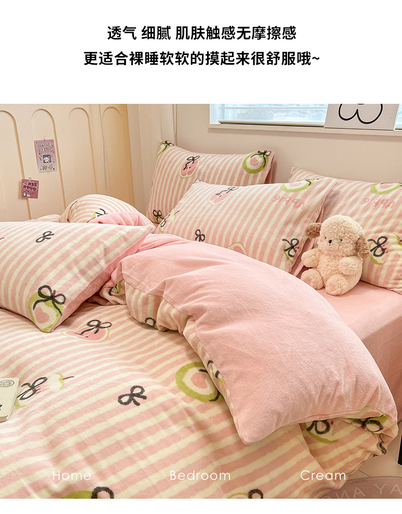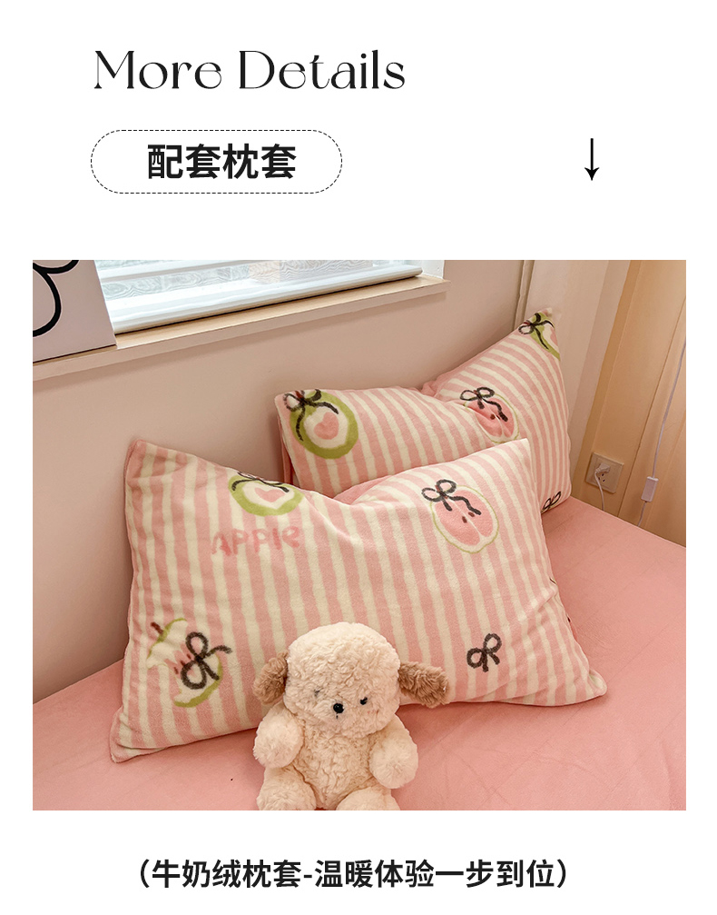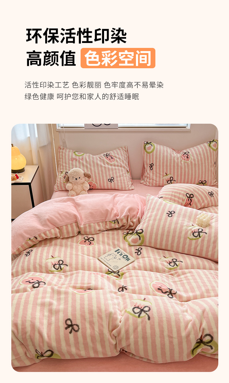 商品名称:捌月 2024新款童话镇系列高克重印花牛奶绒四件套卡通小清新加厚保暖绒套件 青苹果