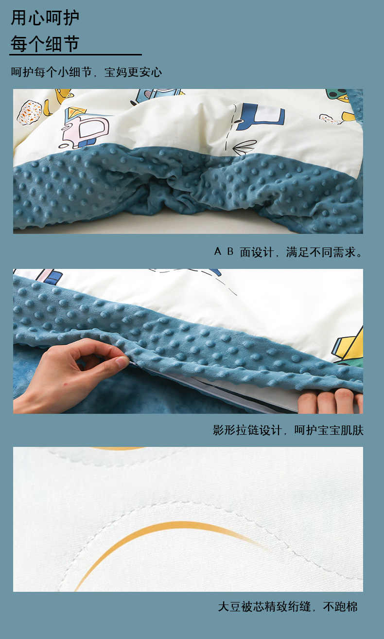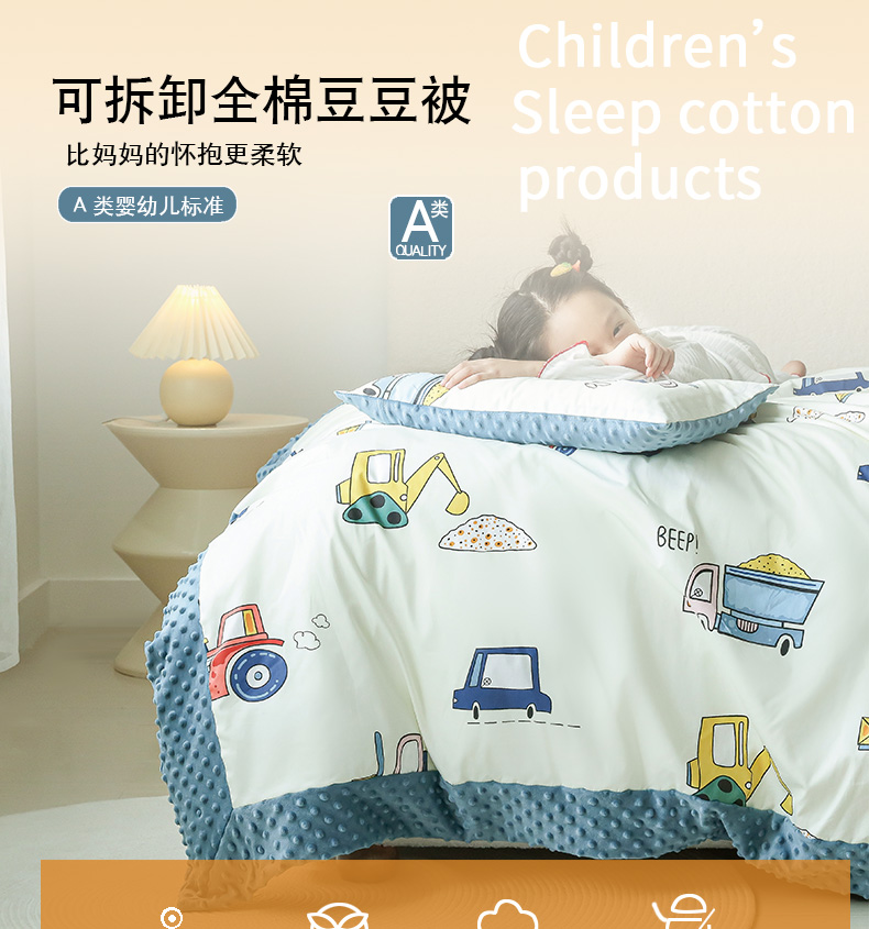 商品名称:艾佳宝贝 2024秋冬全棉豆豆绒儿童多功能可拆卸盖毯被单被套 挖机战队