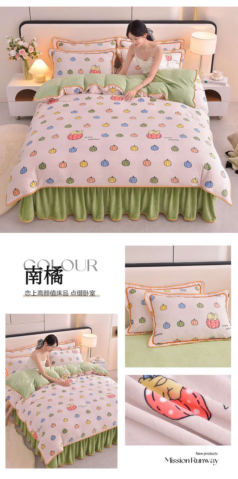 商品名称:富之航 2024新款8-9斤高克重印花牛奶绒四件套保暖绒套件直播爆款南橘
