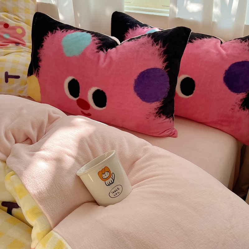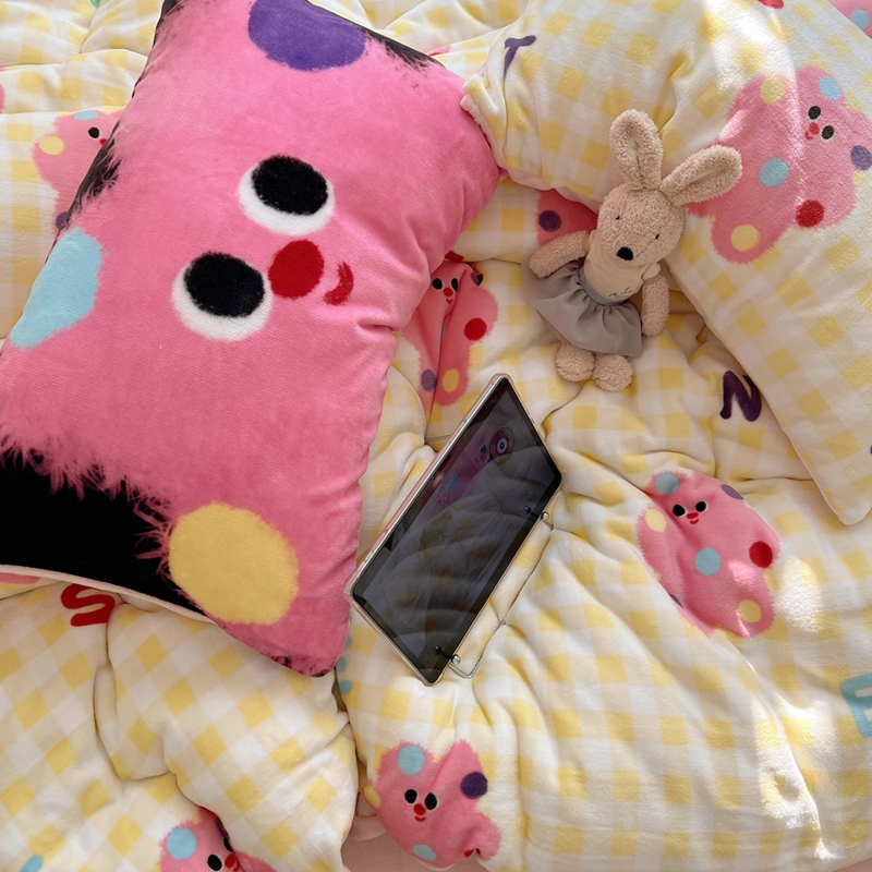 桃喜 2024秋冬新品卡通混搭牛奶绒系列四件套 黄格小怪兽