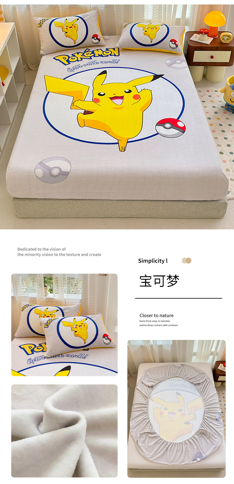 ds生活馆 2026新款大版数码印花牛奶绒单床笠 宝可梦