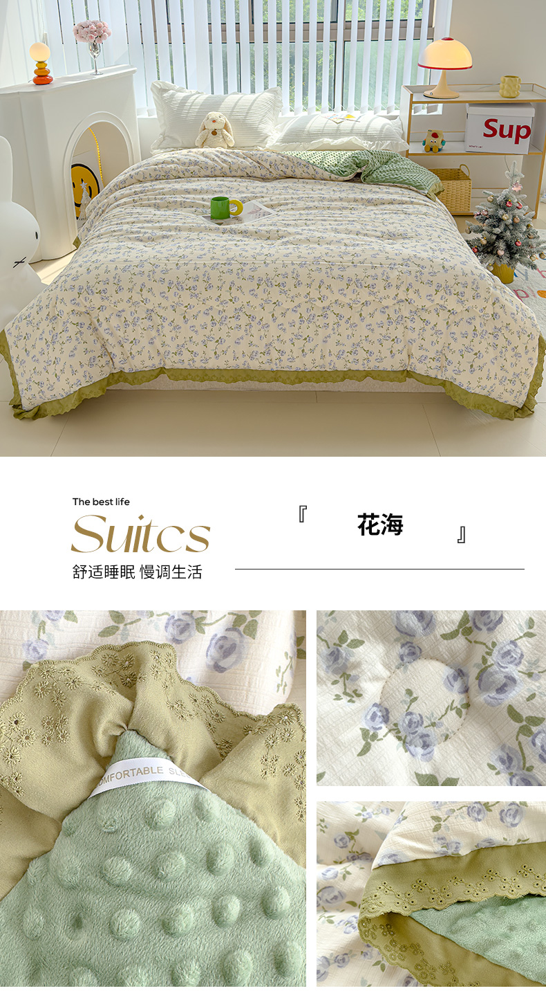 • 91家纺网 家纺一手货源 找家纺 (总)芯恋 25年新款亚麻风全棉花边云感冬被四季被加厚冬被,苍兰,瑰丽,花弄影,花影,蒹葭,落霞,晚秋,云清