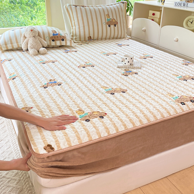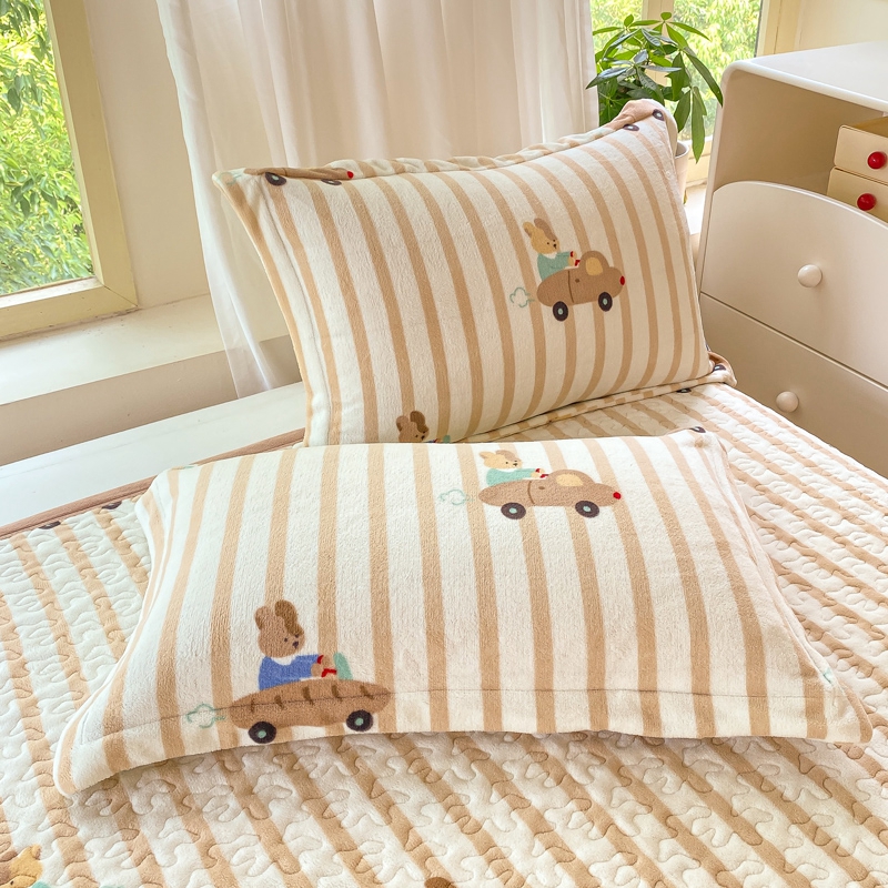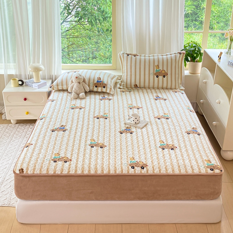 • 91家纺网 家纺一手货源 找家纺 赫梵茜 2024新款高克重安抚豆豆被套牛奶绒夹棉床笠四件套 萝卜小兔