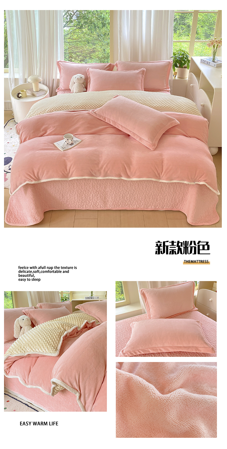 当前位置: 91家纺网 > 商品网购 > 床品套件 > 四件套 > 牛奶绒四件套 > 赫梵茜 2024新款高克重安抚豆豆被套牛奶绒夹棉床盖四件套 新款粉色