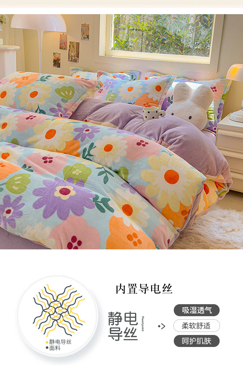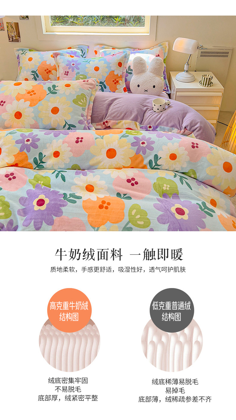 2025新款田园花卉类印花牛奶绒被套单件 布兰卡