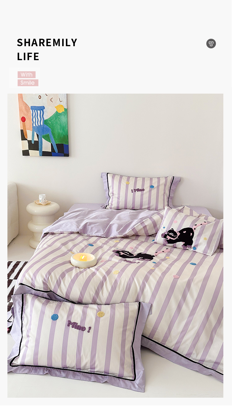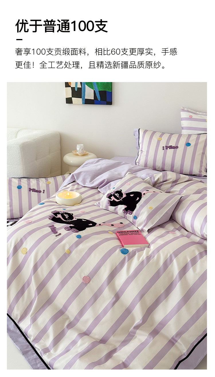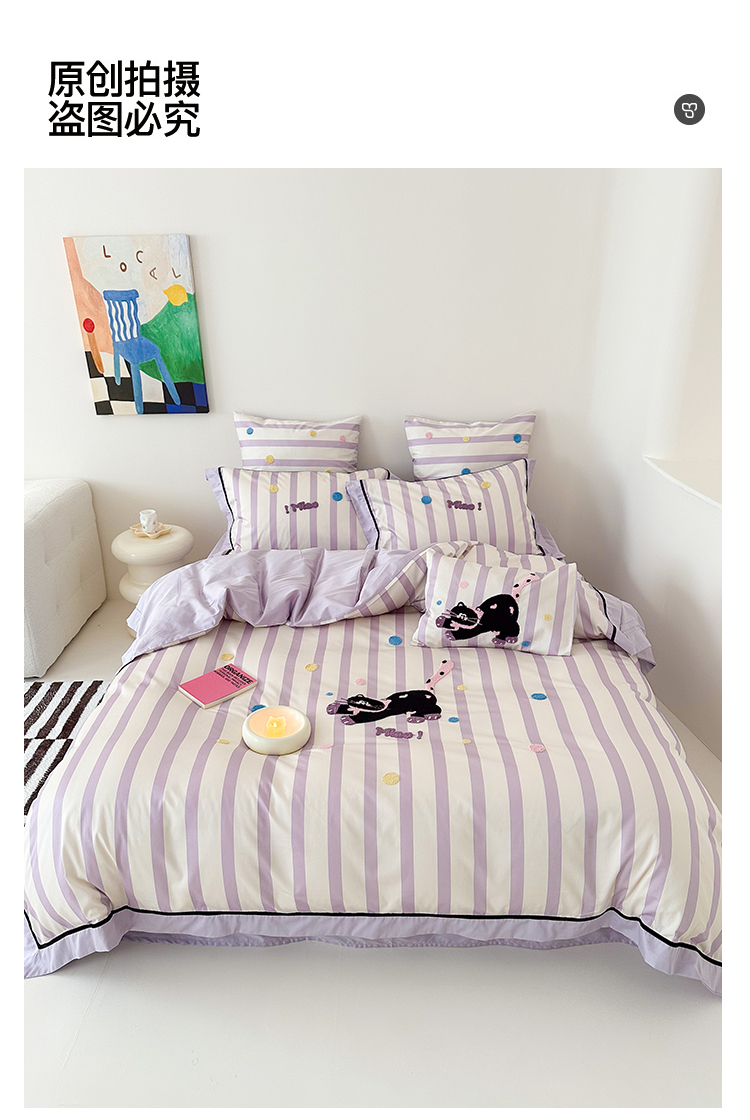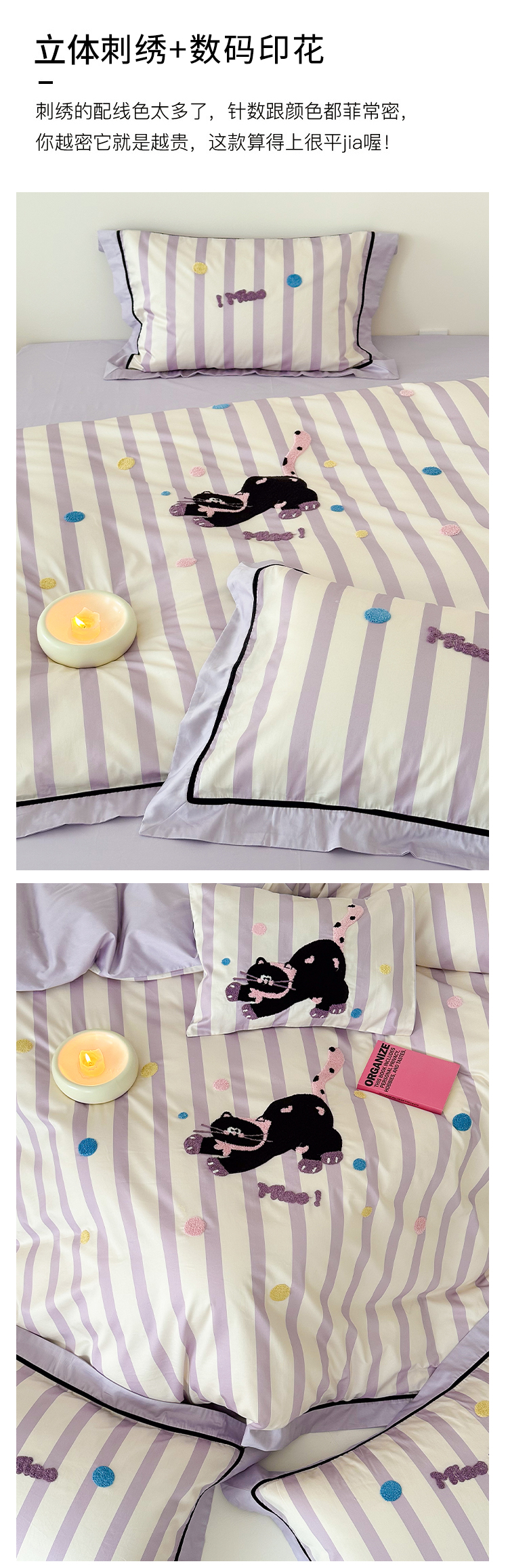 (总)西西家居 2024新款100支澳棉数码印花+绣花四件套--好运小猫