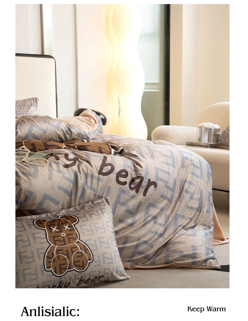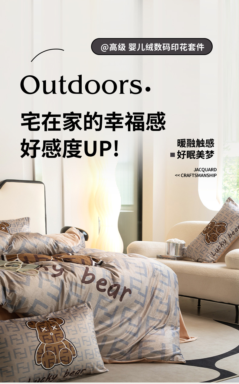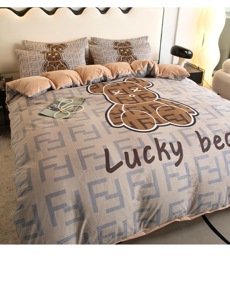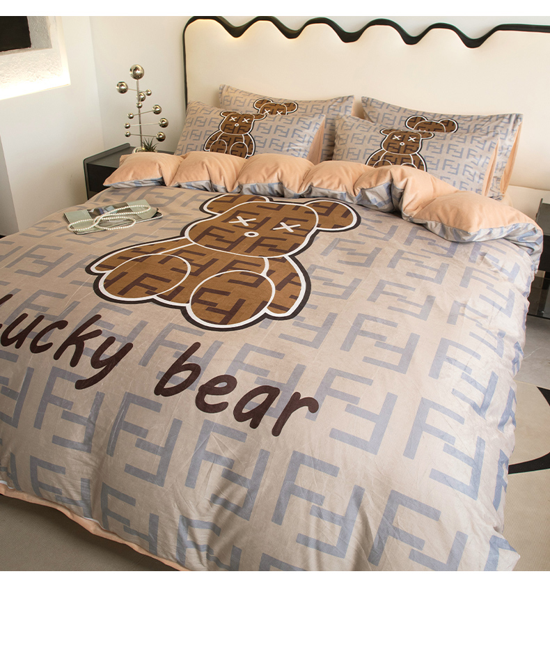 色鬼布艺 2024新款婴儿绒数码印花牛奶绒四件套仿大牌直播爆款网红款 咔芬