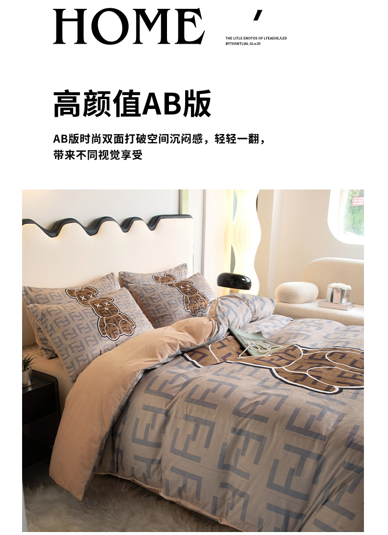 (总)色鬼布艺高端家居主号 2025新款数码印花牛奶绒四件套,白香花,黑白V,灰迪,经典兔,咔芬,卡夫兔,路易兔,罗兰粉,萌迪,萌萌兔,七彩熊,棋盘兔,熊头白,熊仔白,熊仔咖