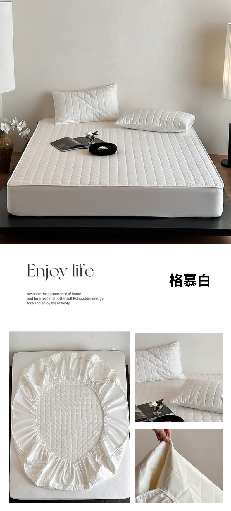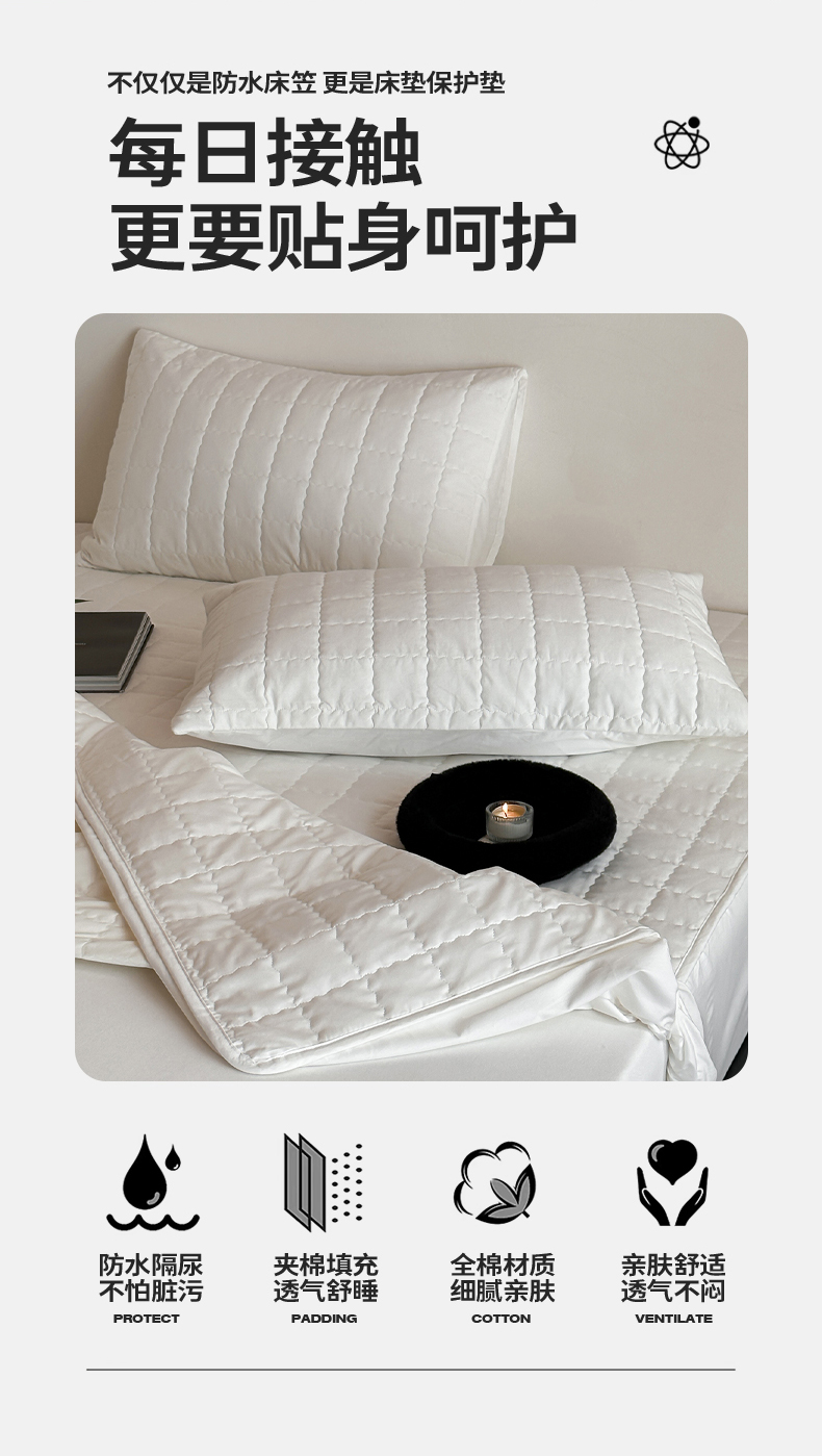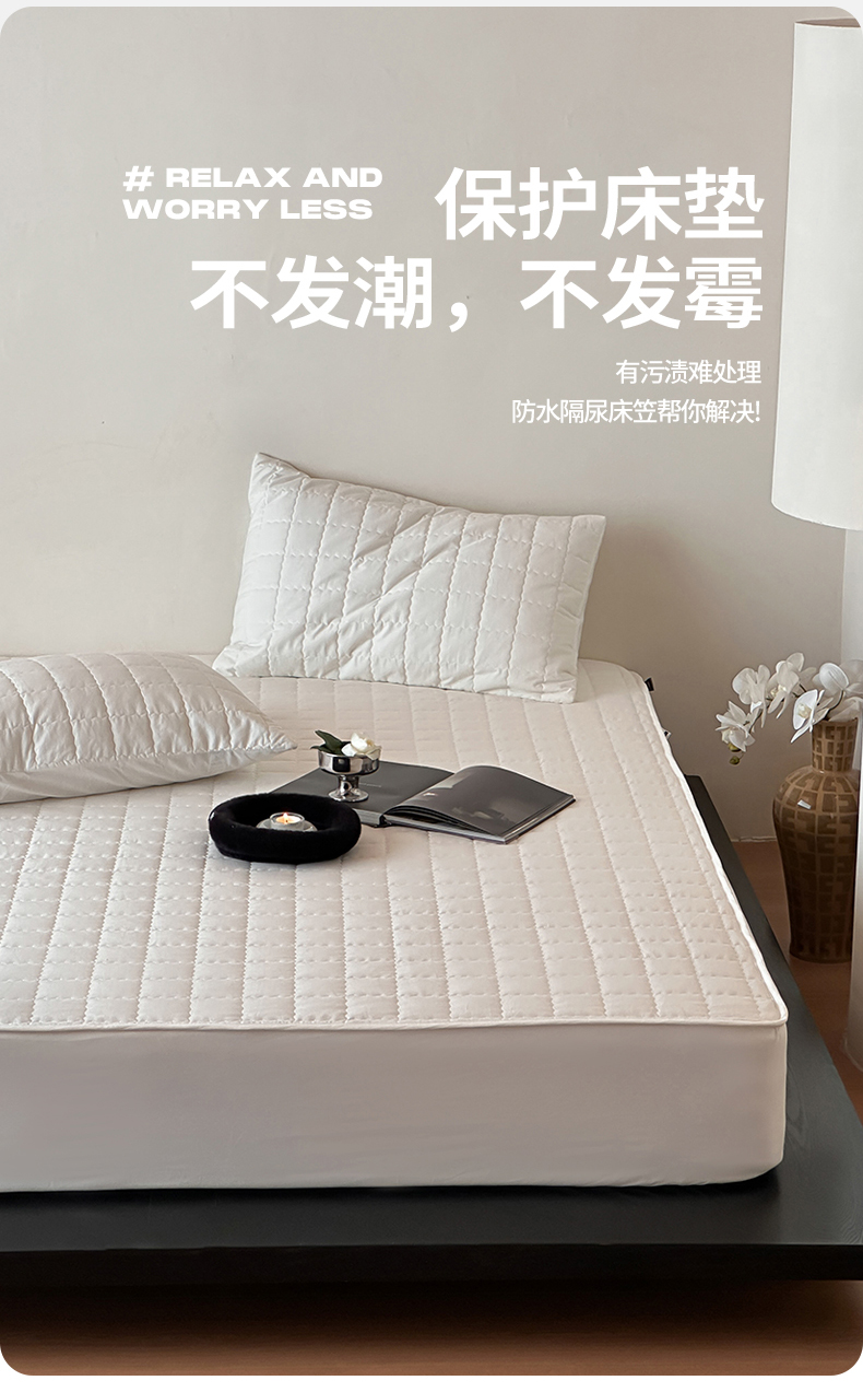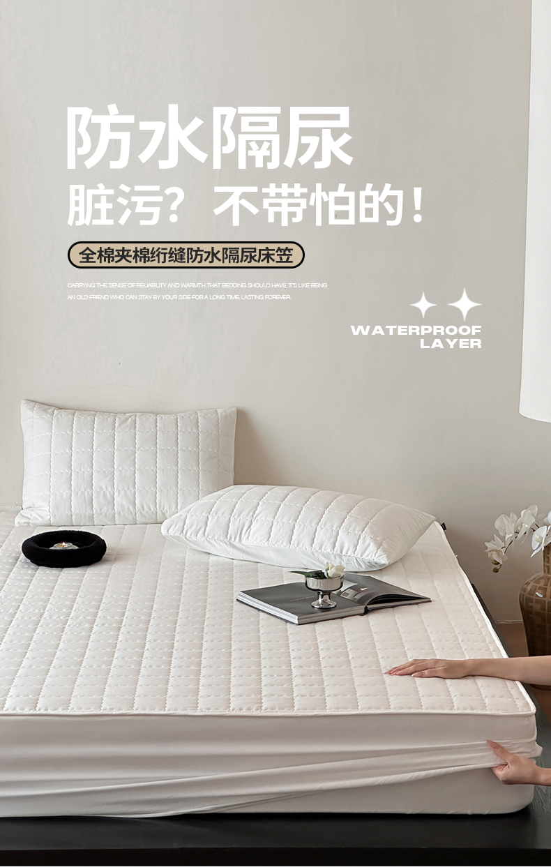 三味舒屋 2024新款全棉夹棉绗缝防水隔尿床笠【格慕系列】 格慕白