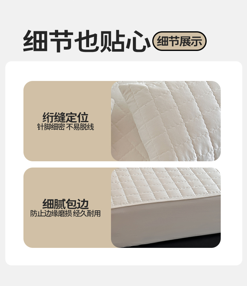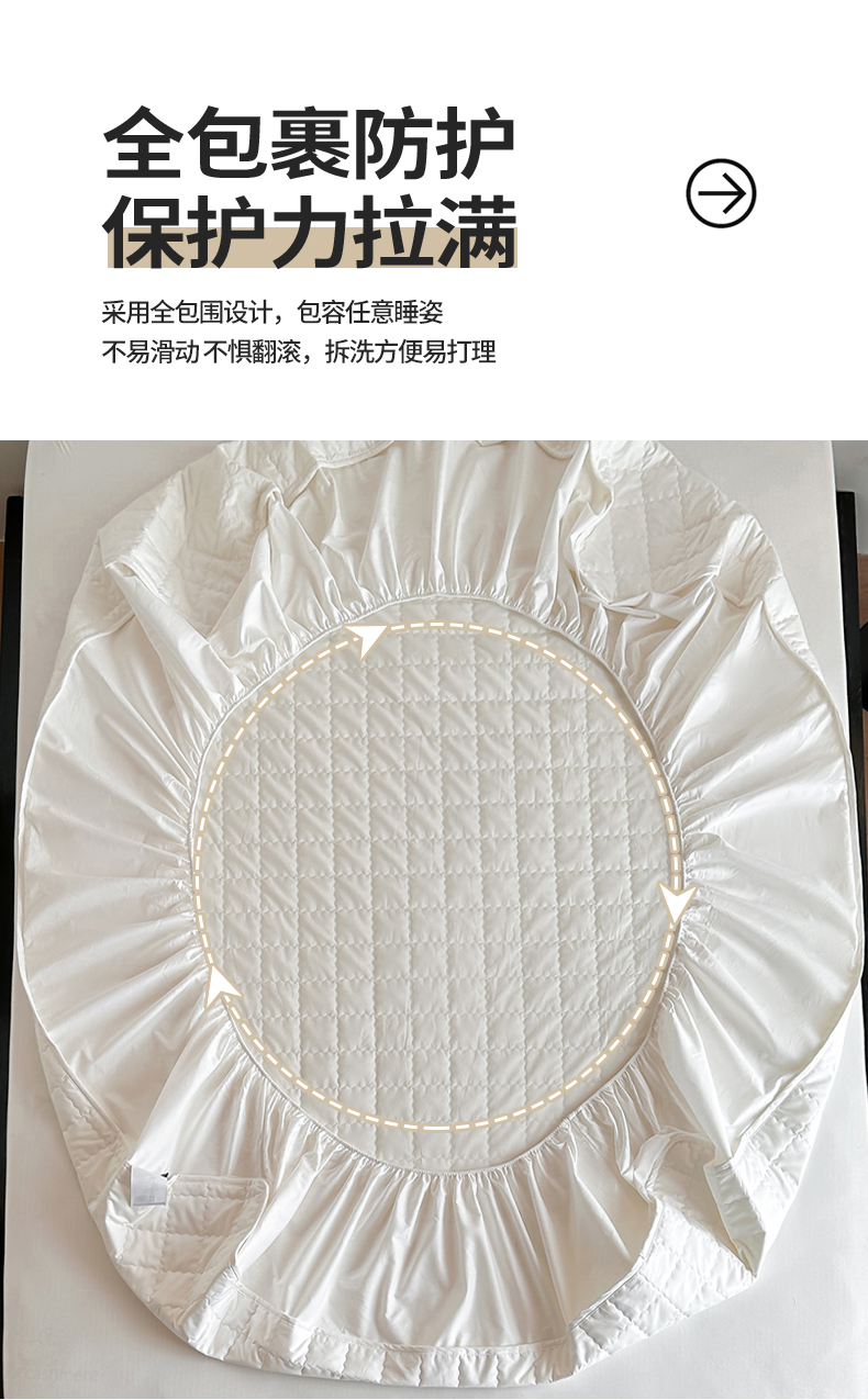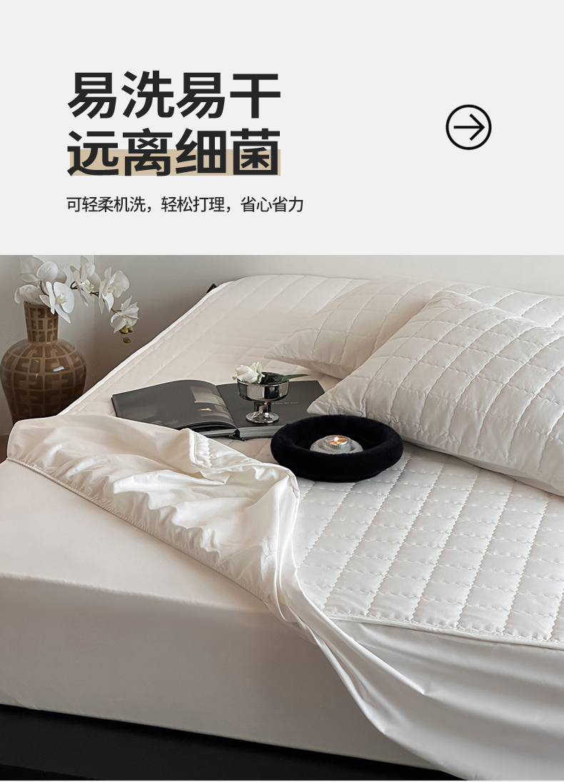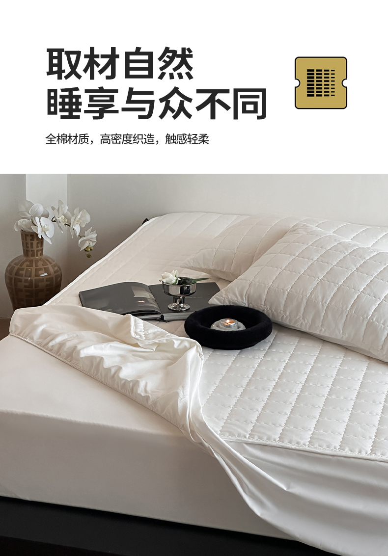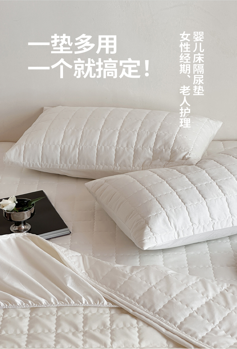 三味舒屋 2024新款全棉夹棉绗缝防水隔尿床笠【格慕系列】 格慕白
