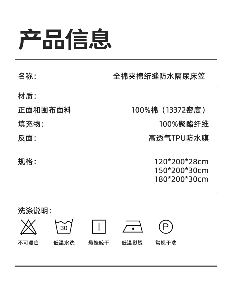 商品名称:三味舒屋 2024新款全棉夹棉绗缝防水隔尿床笠【格慕系列】 格慕白