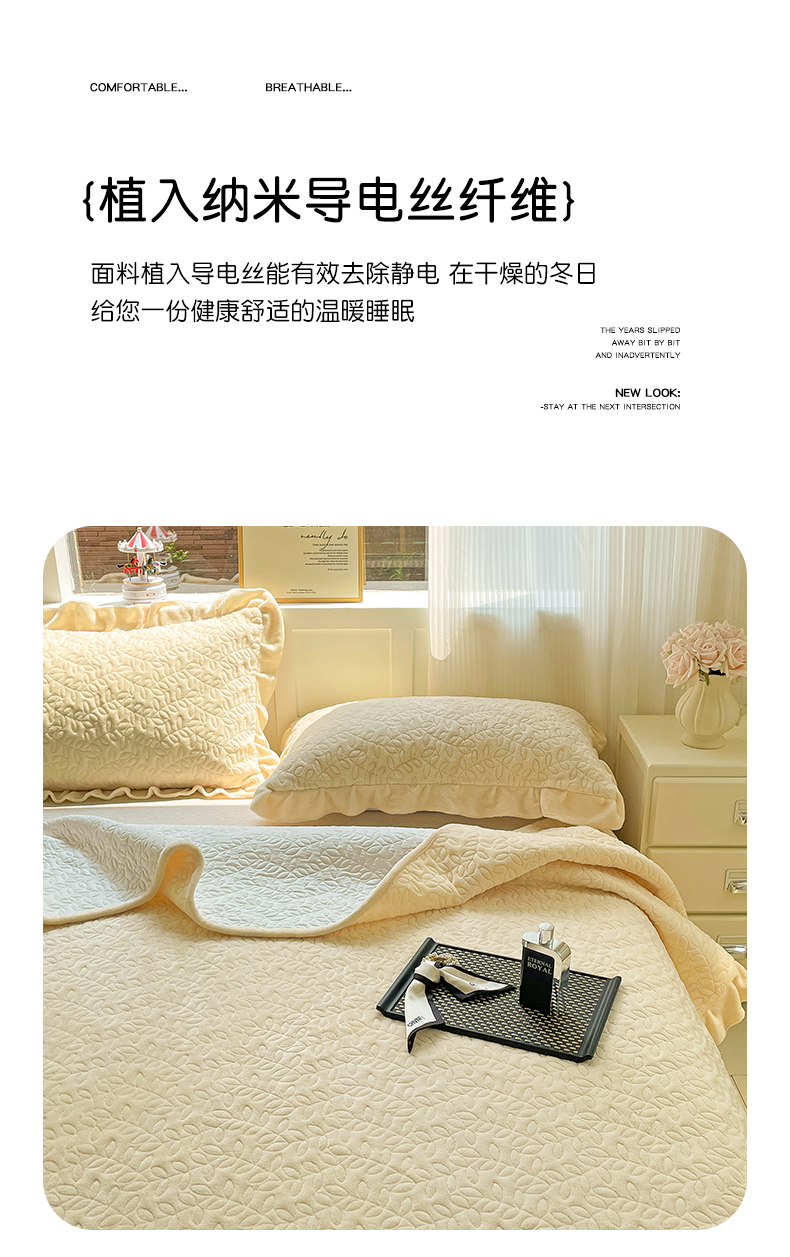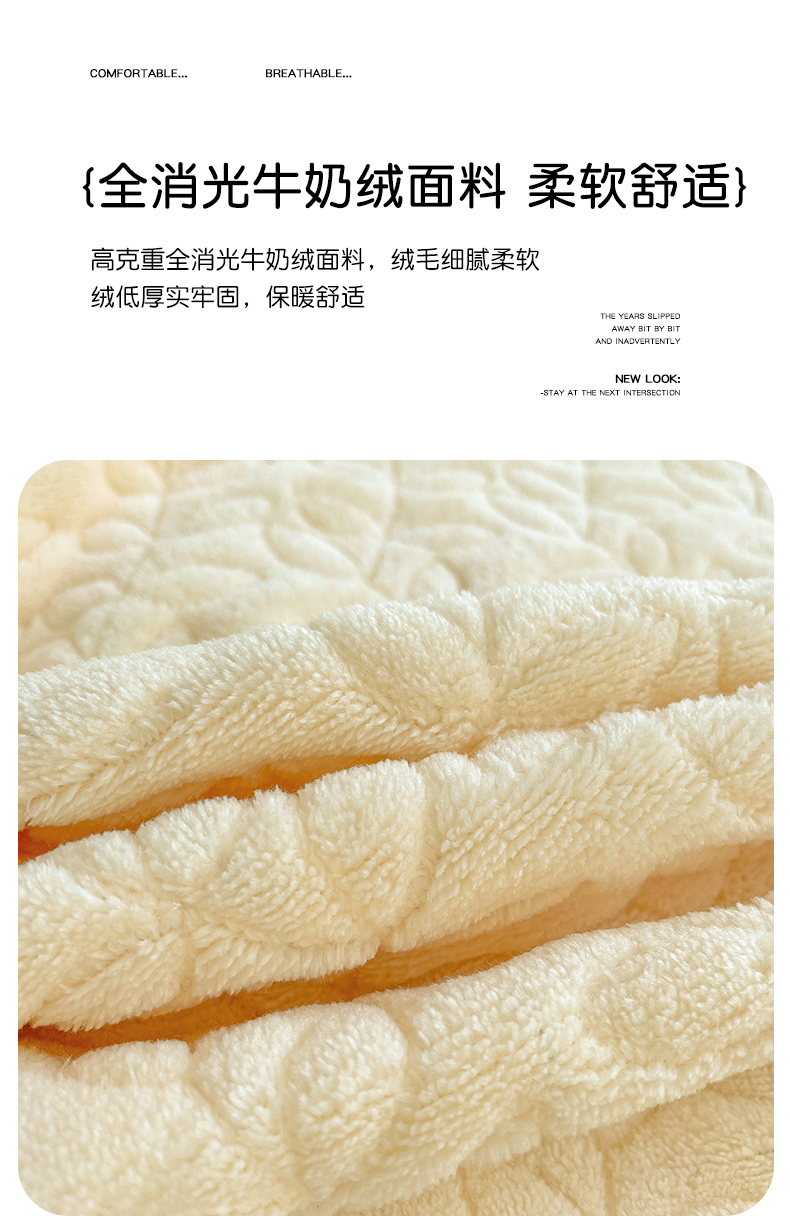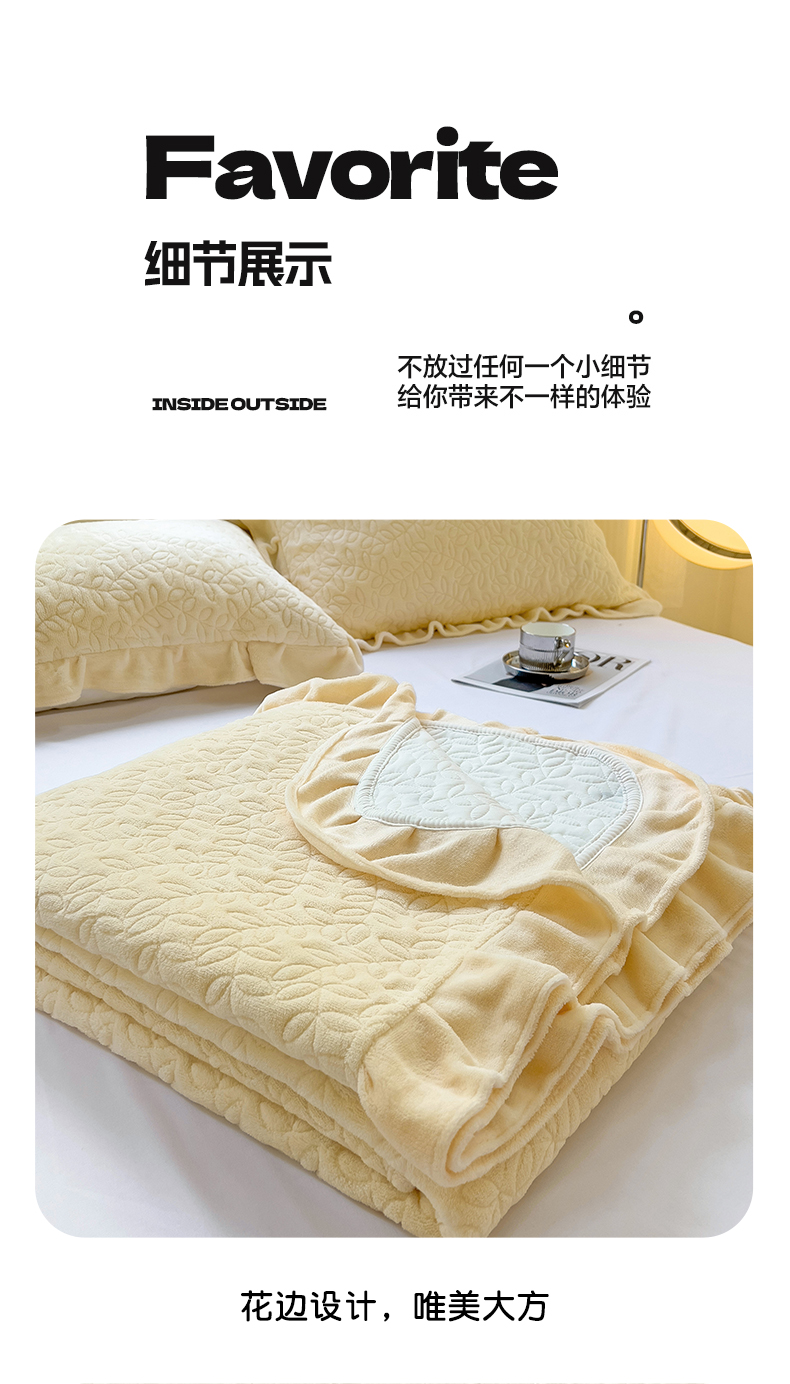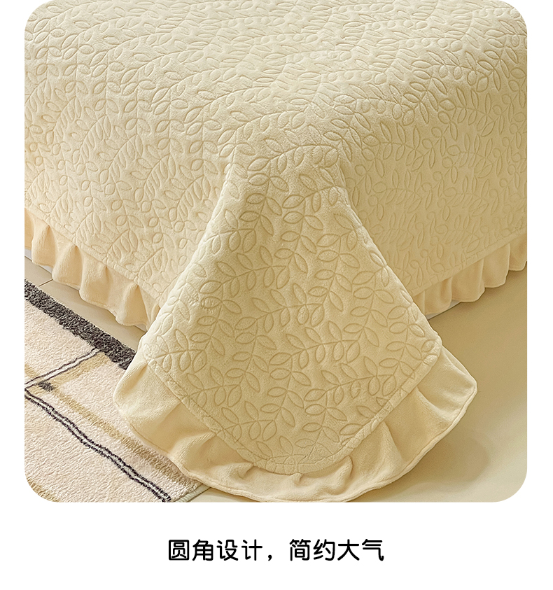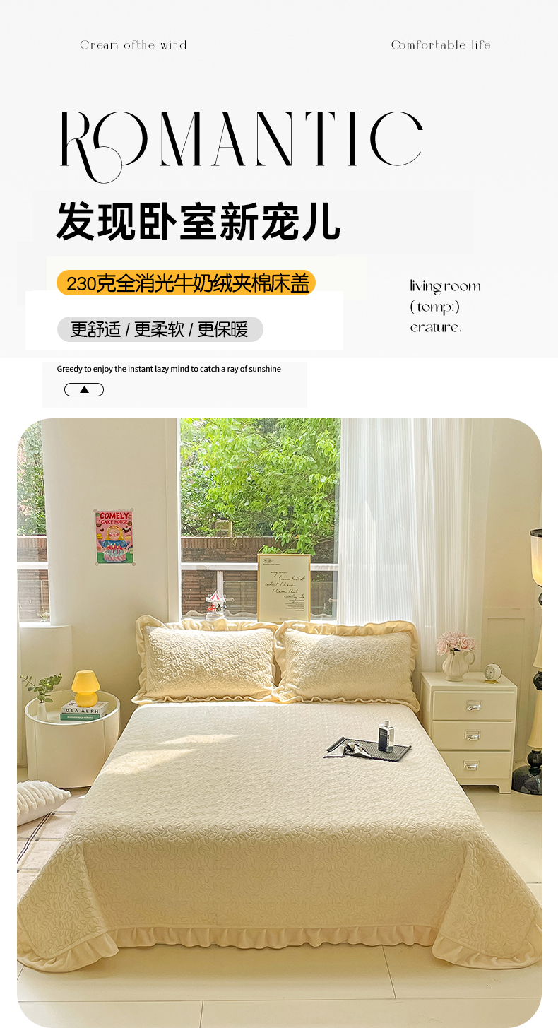 • 91家纺网 家纺一手货源 找家纺 漫时光 2025新款纯色牛奶绒花边款床盖 罗曼-奶杏