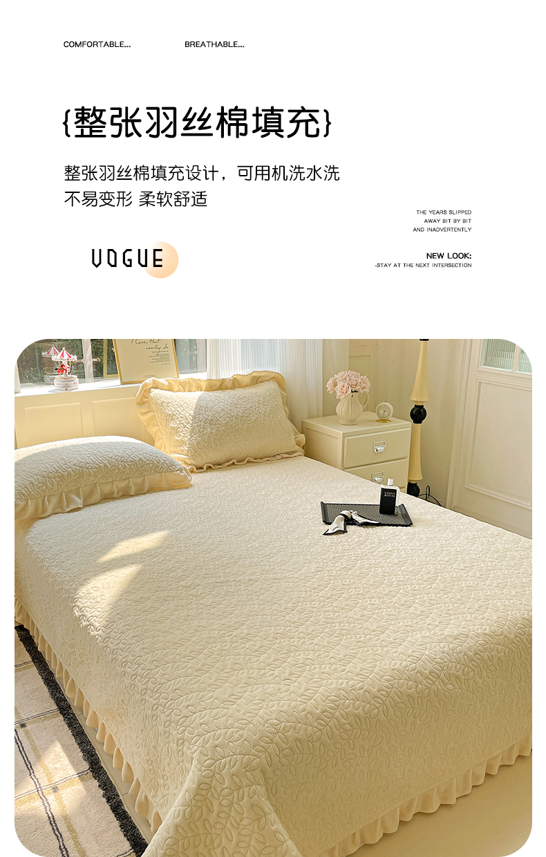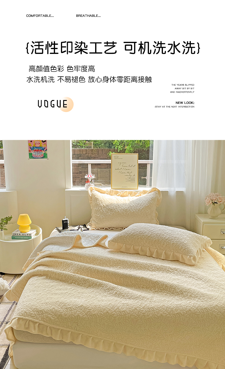 漫时光 2025新款纯色牛奶绒花边款床盖 罗曼-奶杏