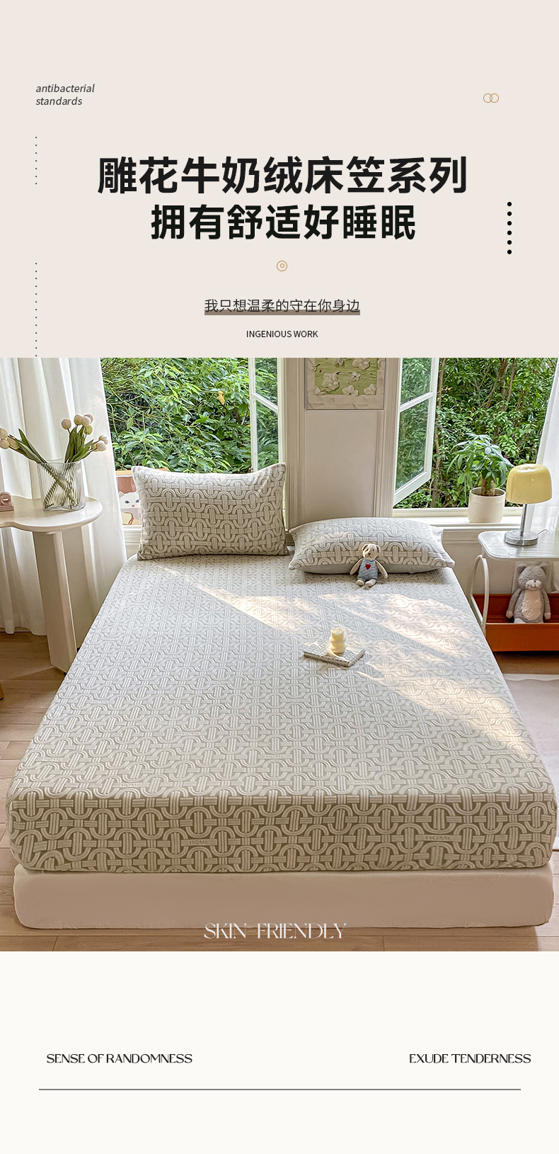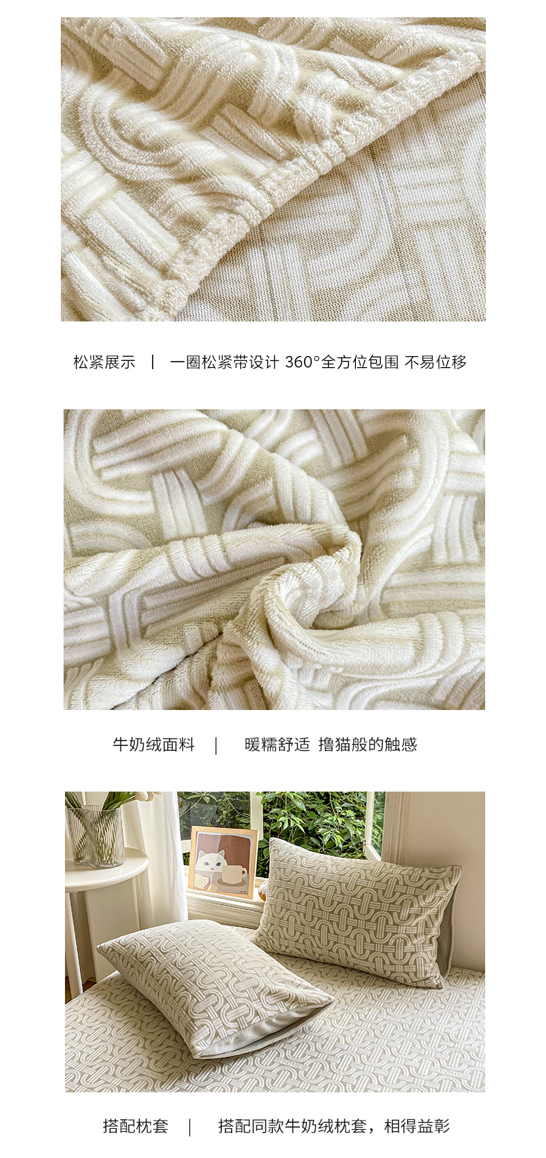 • 91家纺网 家纺一手货源 找家纺 其奥家纺 2025新款A类雕花绒牛奶绒床笠三件套单床笠宝宝绒婴儿绒 巴克曼 米灰