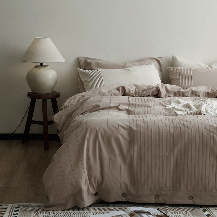 商品名称:子和家居 2024新款全棉线条(纽扣)四件套 甘草咖(纽扣)