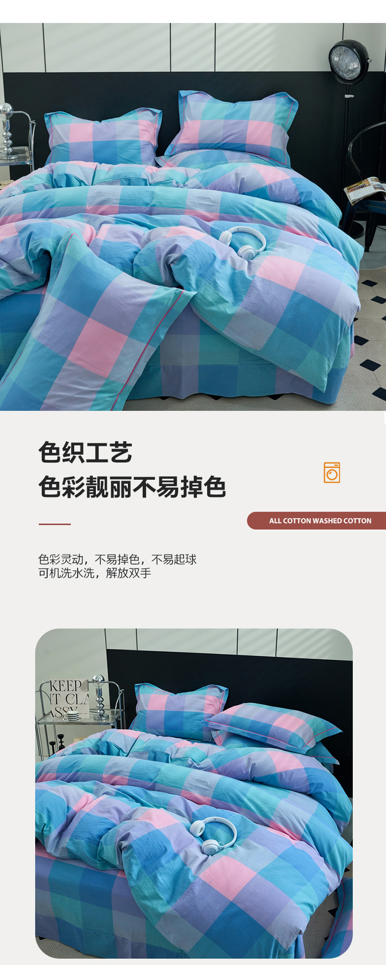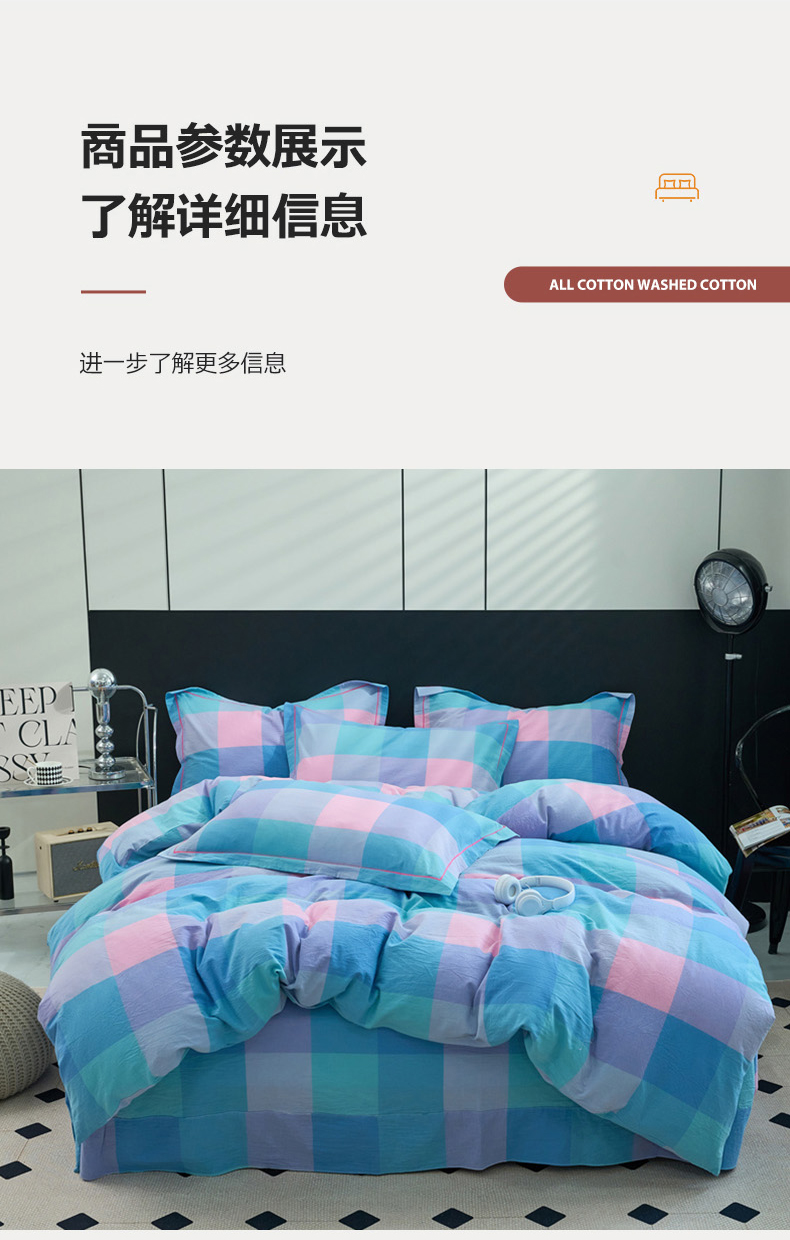 当前位置: 91家纺网 > 商品网购 > 床品套件 > 四件套 > 水洗棉四件套 > 三沁家居 2025新款格子色织全棉水洗棉四件套直播爆款量大价优 彩虹大格