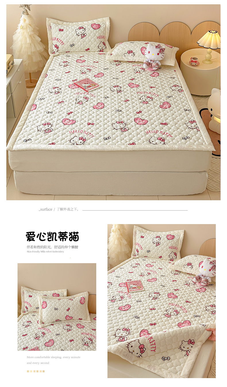 当前位置: 91家纺网 > 商品网购 > 床垫/床褥 > 普通床垫 > 沐辰 2024新款牛奶绒夹棉床垫三丽欧系列 爱心凯蒂猫