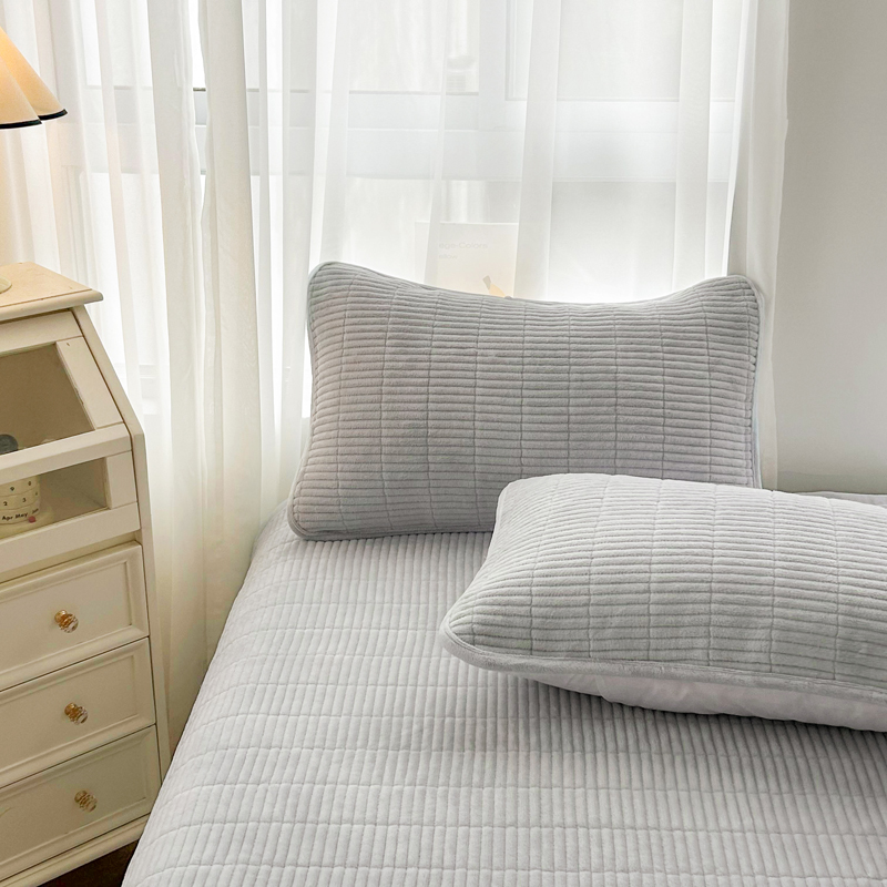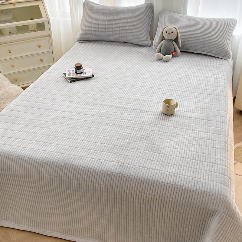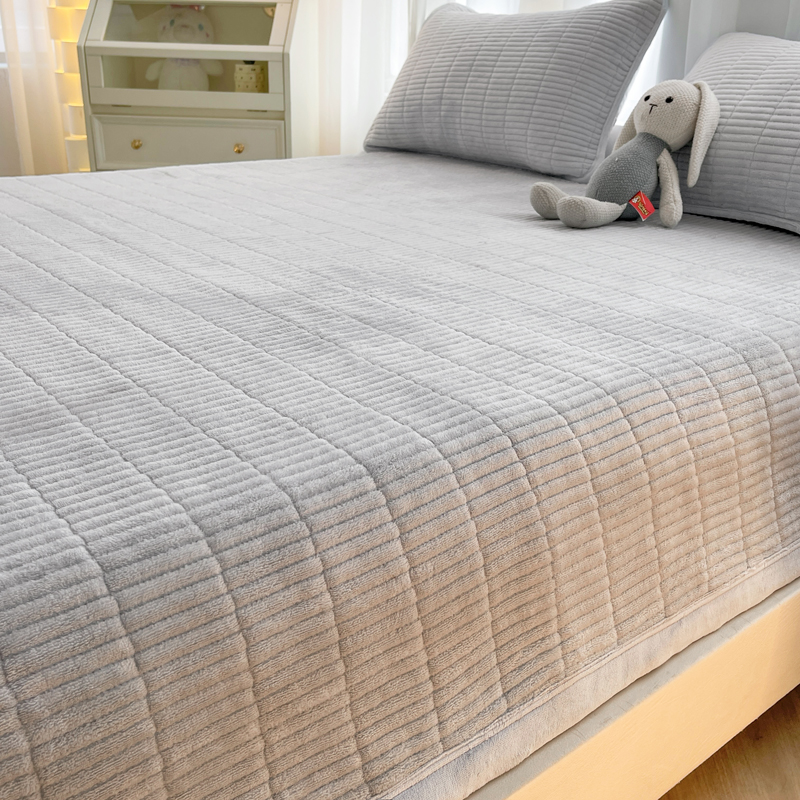 商品名称:梵朴 2024新款牛奶绒直角包边床盖 简约气质灰