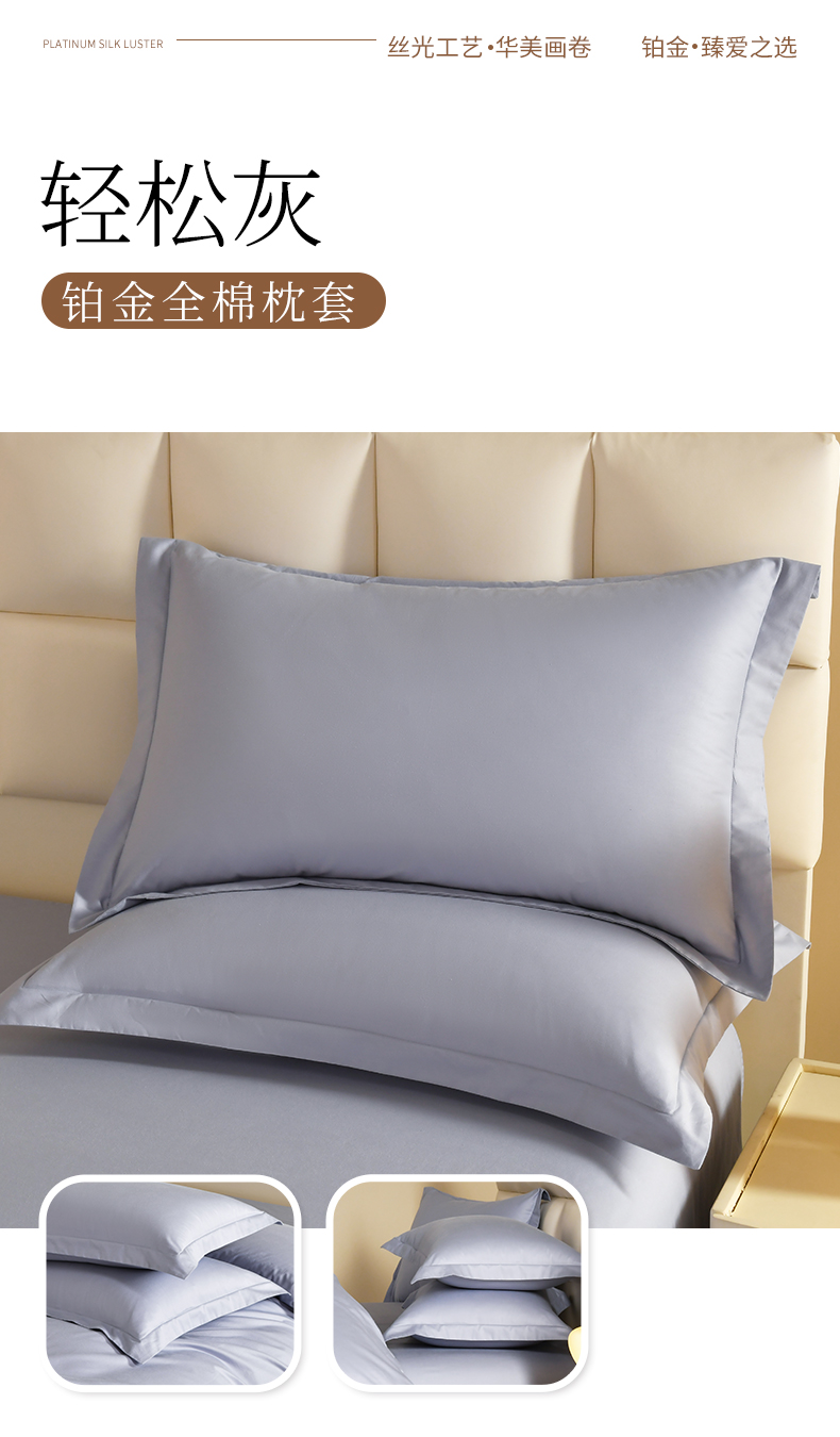 商品名称:元元被芯 2025款纯色全丝光-全精梳高密纺-铂金A类全棉枕套 轻松灰