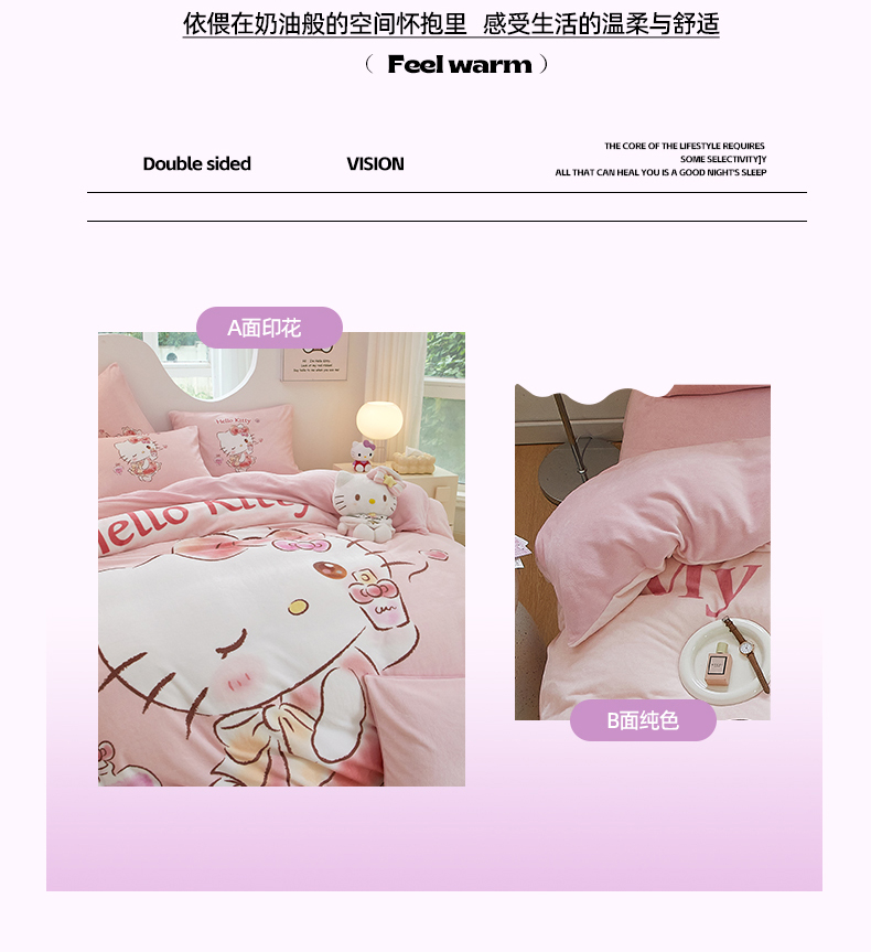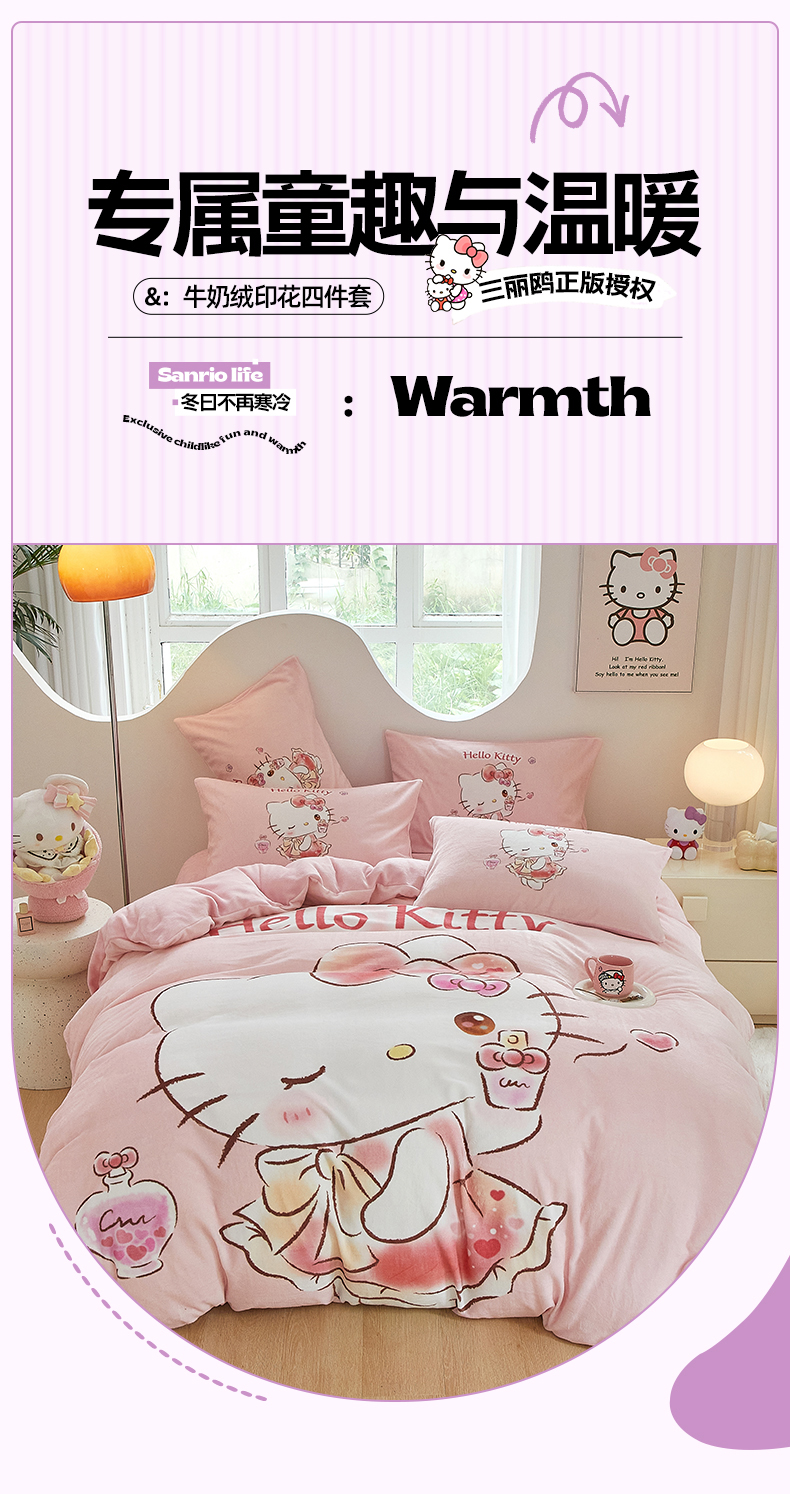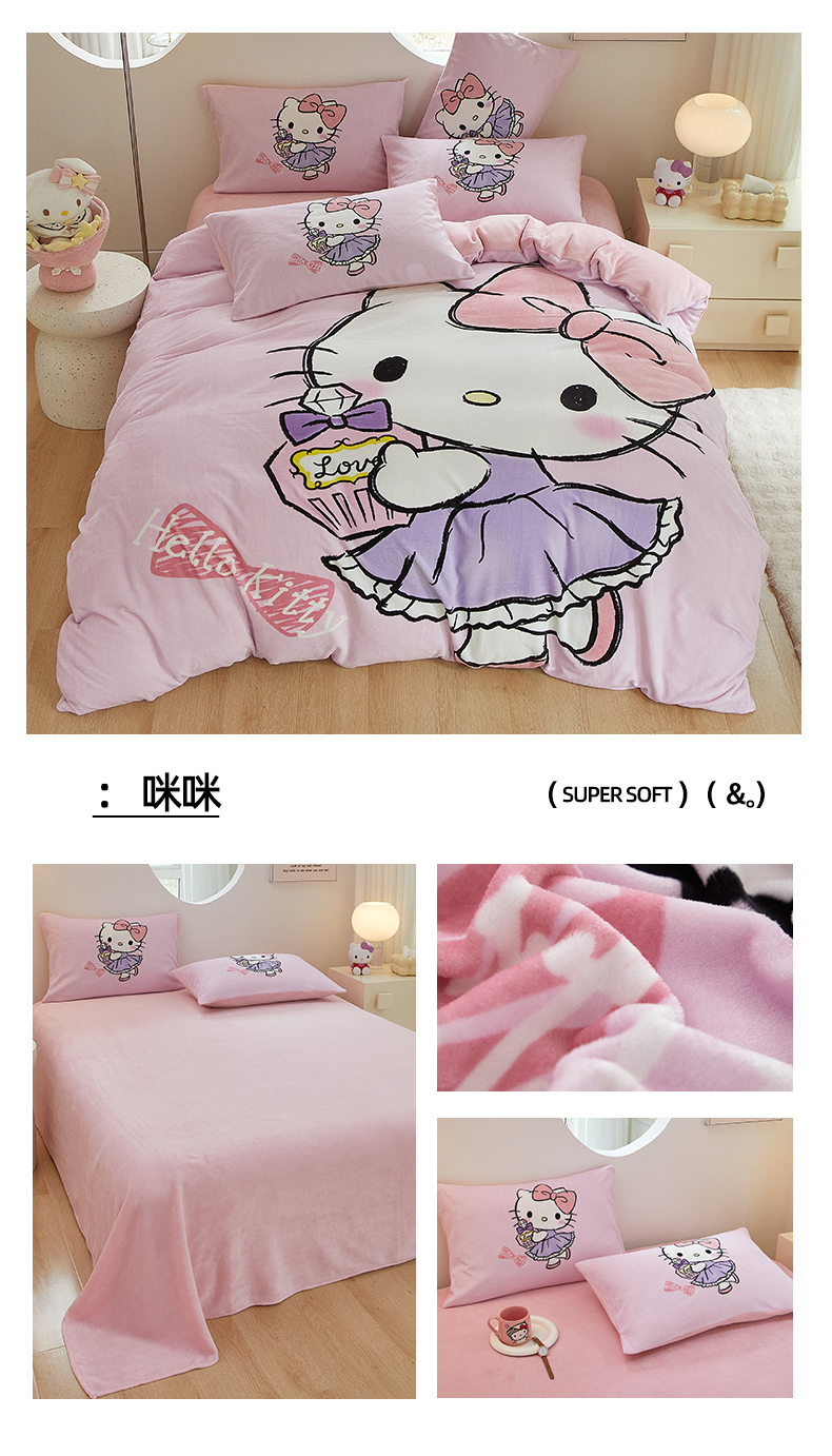当前位置: 91家纺网 > 商品网购 > 床品套件 > 四件套 > 牛奶绒四件套 > 蘭菲家纺 2024新款牛奶绒卡通三丽鸥四件套 向往