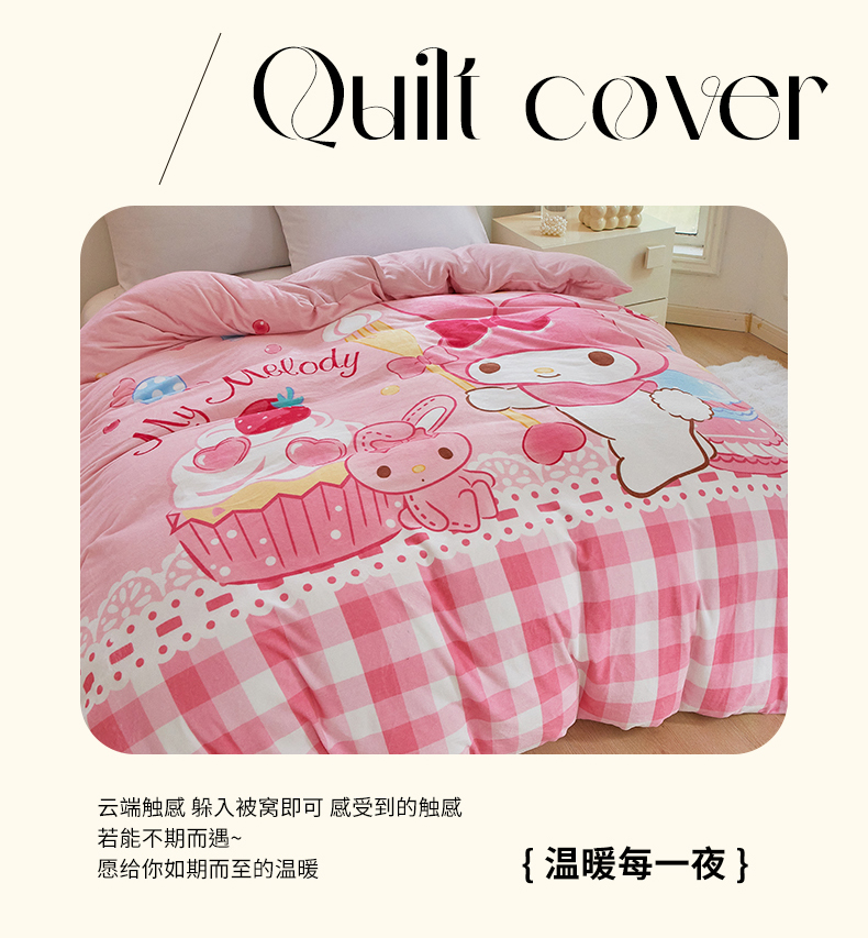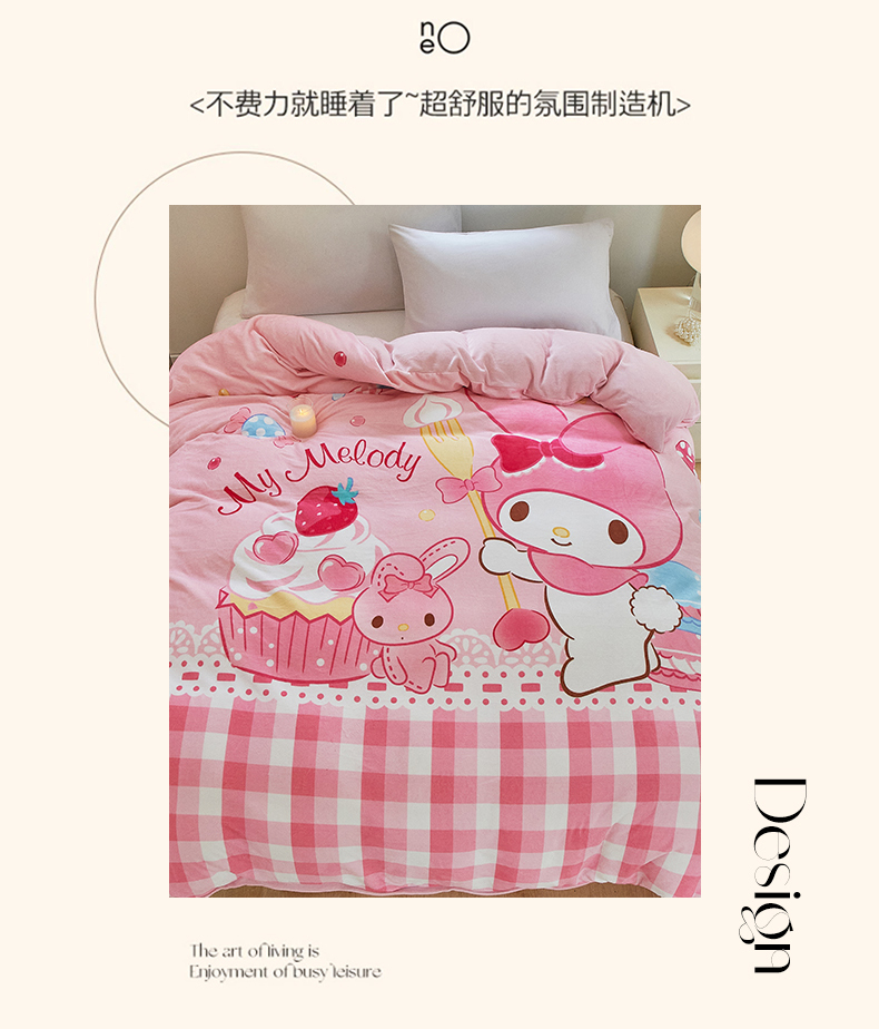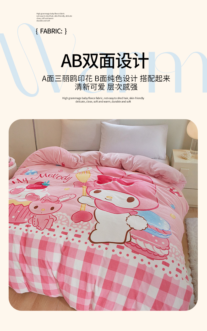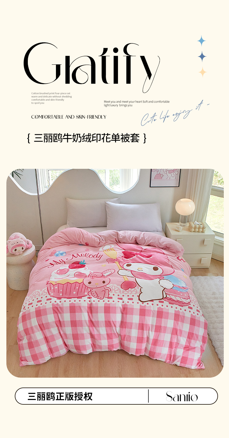 蘭菲家纺 2024新款牛奶绒卡通三丽鸥单品被套 生日快乐