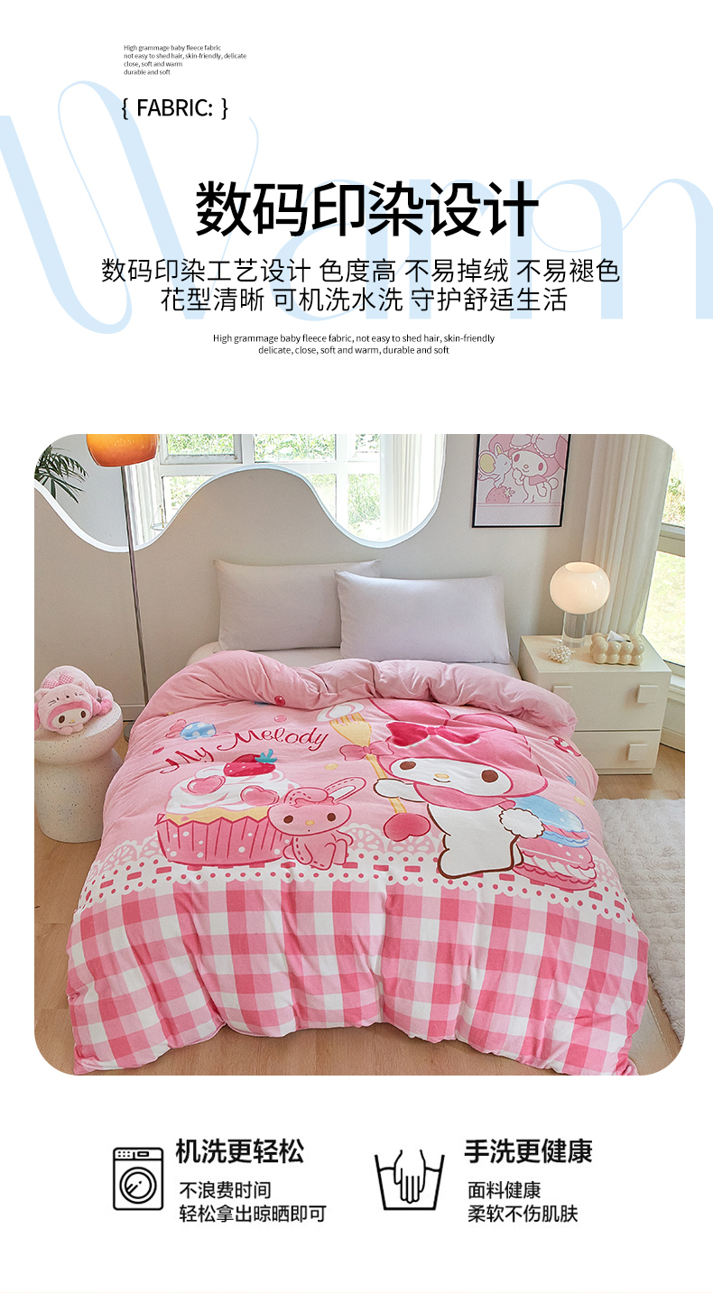 商品名称:蘭菲家纺 2024新款牛奶绒卡通三丽鸥单品被套 生日快乐