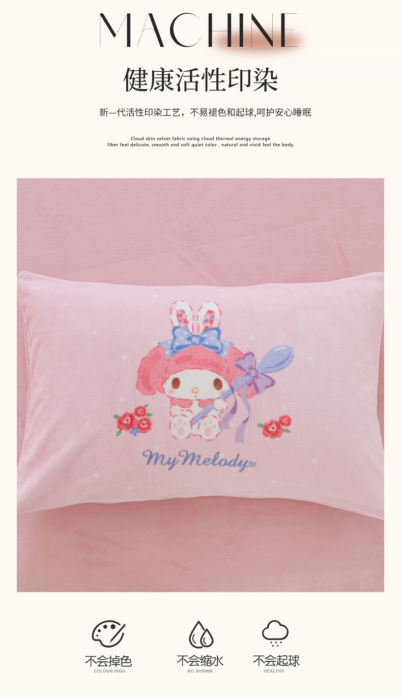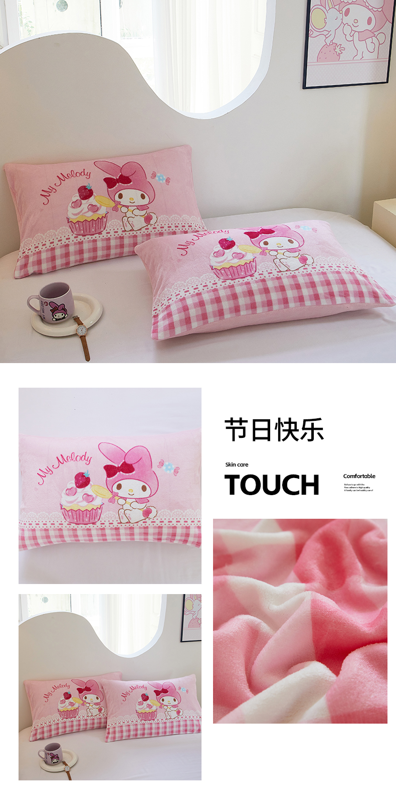 商品名称:蘭菲家纺 2024新款牛奶绒卡通三丽鸥单品枕套 呆萌