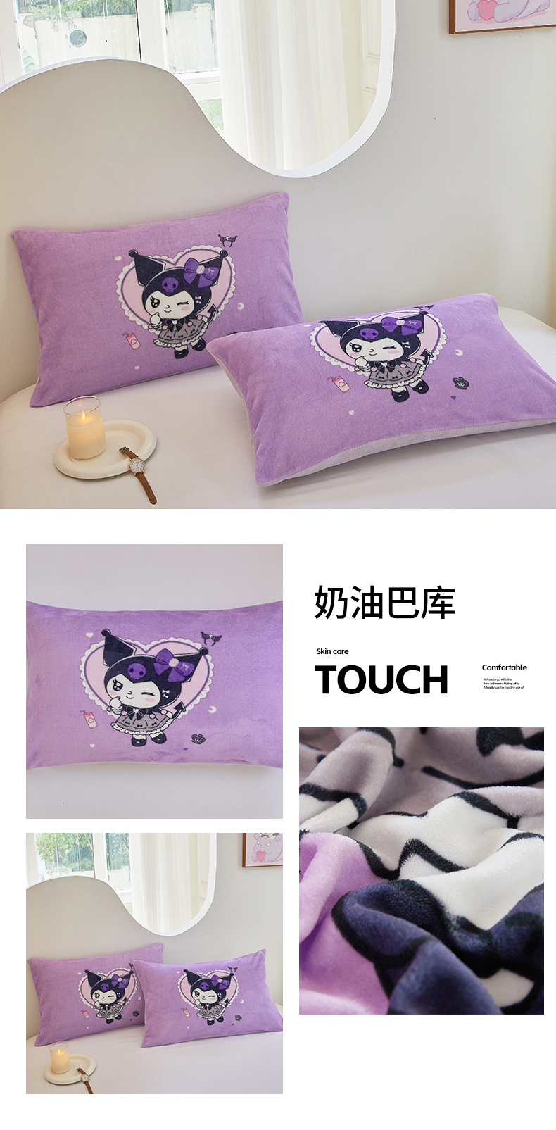 蘭菲家纺 2024新款牛奶绒卡通三丽鸥单品枕套 呆萌