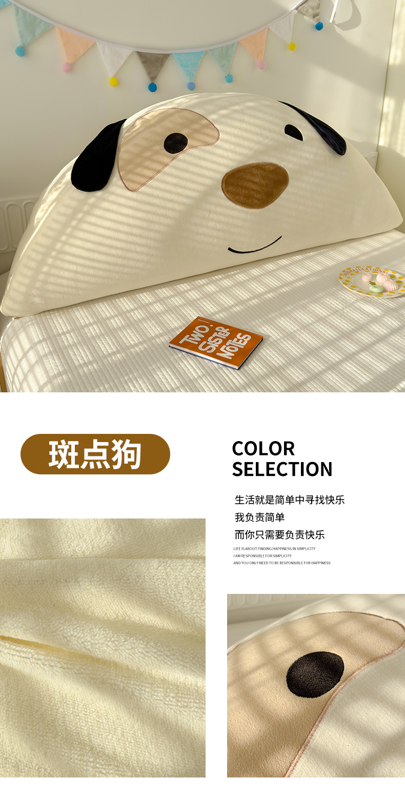 商品名称:乐坊 2024新款牛奶绒绣花贴布绣床头大靠背 斑点狗