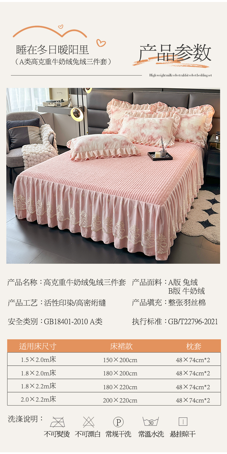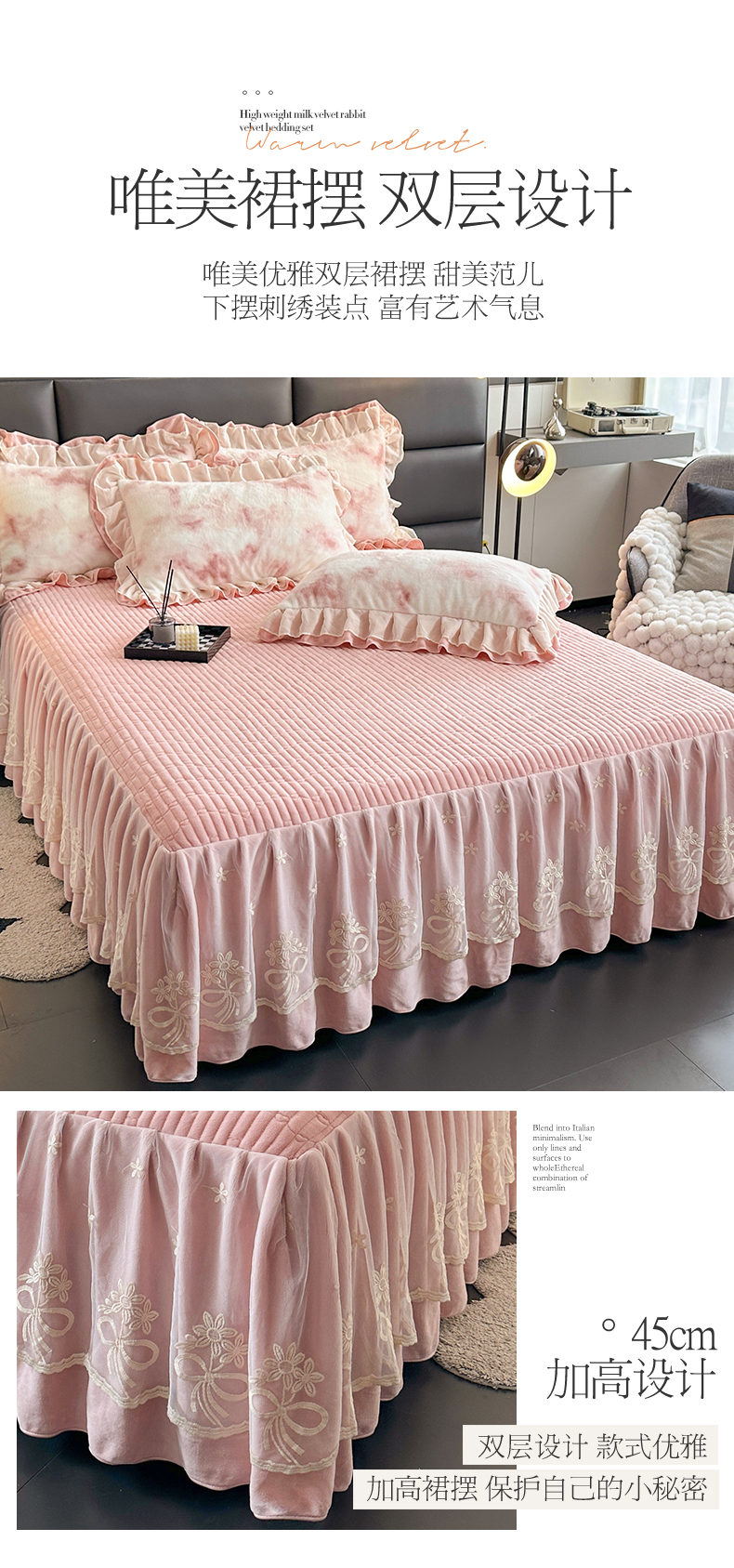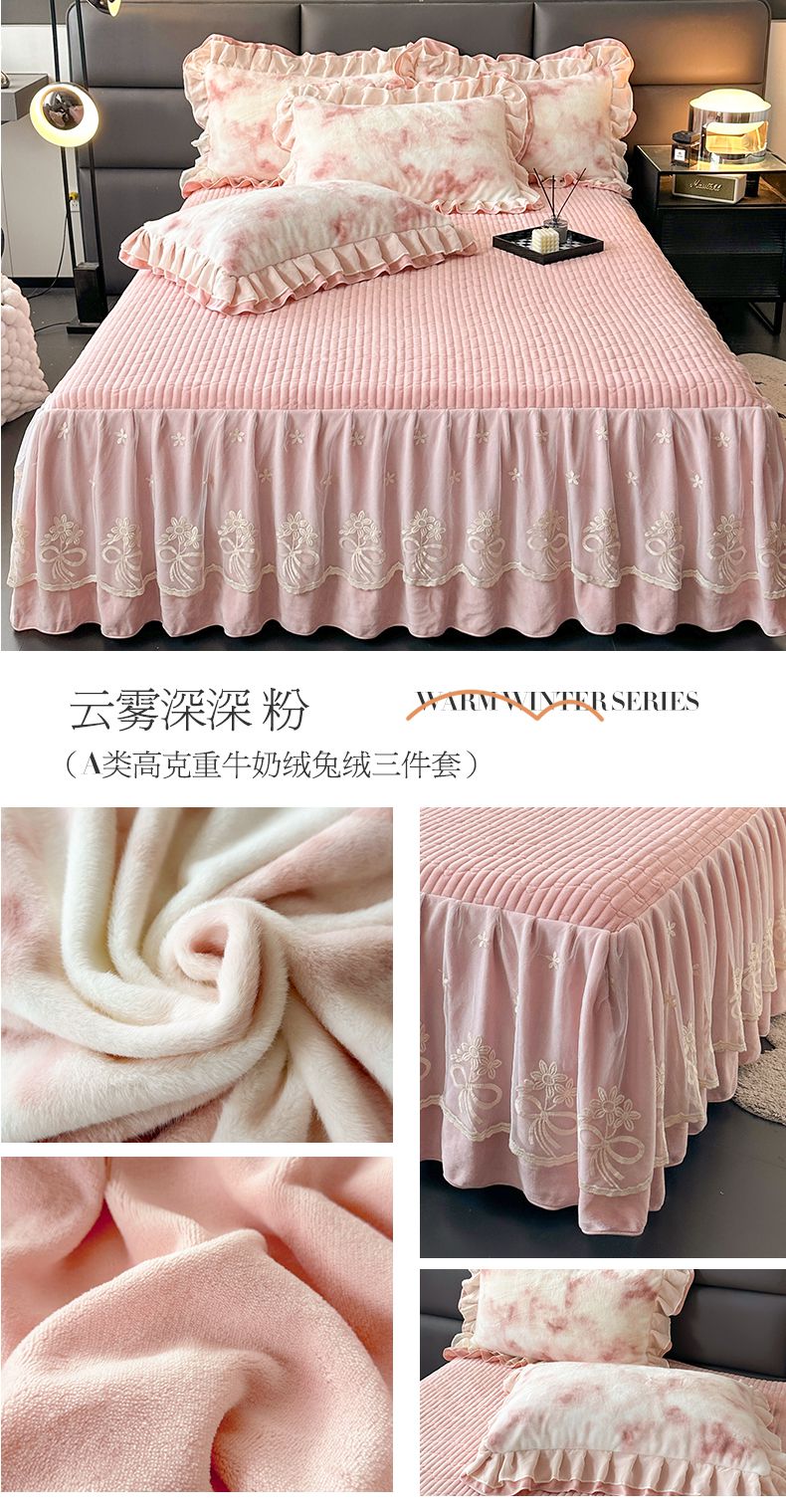 当前位置: 91家纺网 > 商品网购 > 床品套件 > 三件套 > 宜凡家纺 2024新款高克重牛奶绒兔绒床裙三件套 云雾深深 绿