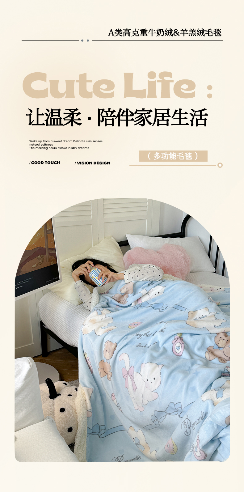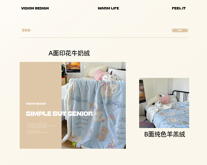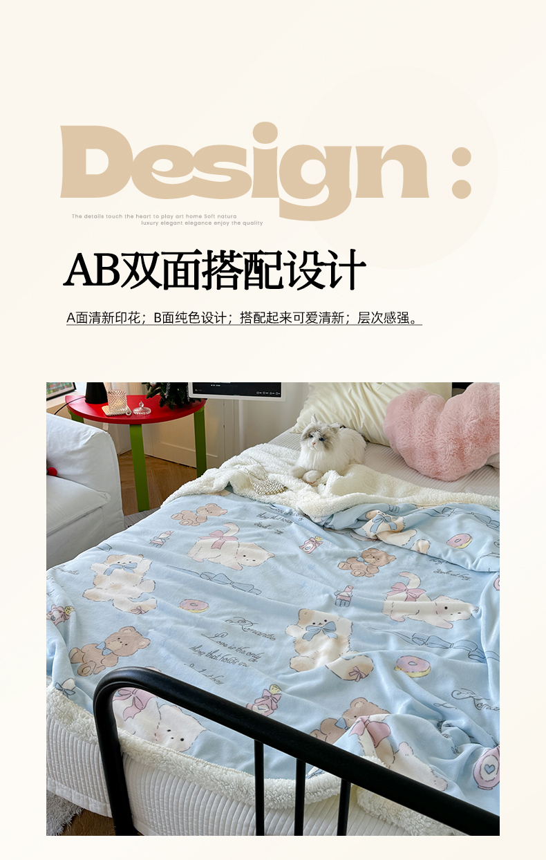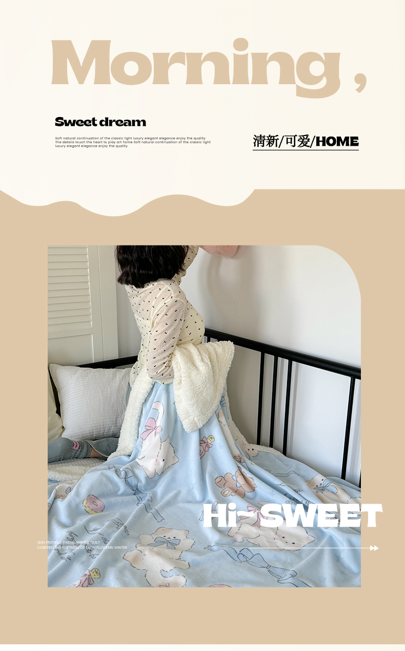 吉象家纺 2024新款高克重牛奶绒羊羔绒印花毛毯 元气猫咪