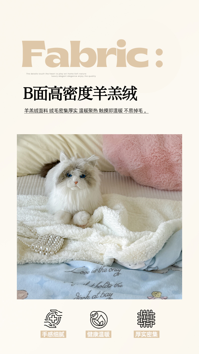 商品名称:吉象家纺 2024新款高克重牛奶绒羊羔绒印花毛毯 元气猫咪