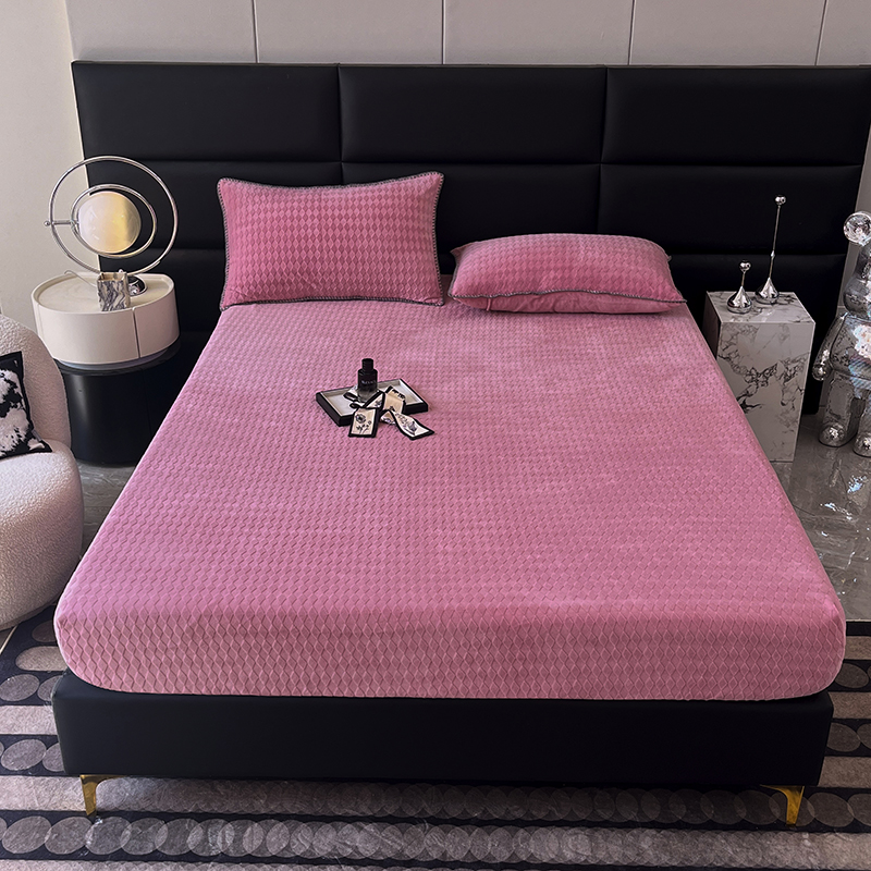 • 91家纺网 家纺一手货源 找家纺 菡宝 2024新款素色烂花床笠 千鸟紫